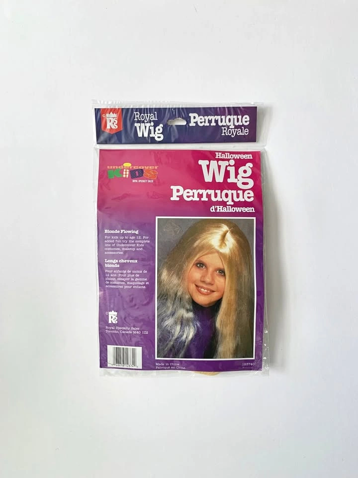 A long flowing blonde wig for kids 12 and under. Perfect for a Halloween costume or playing dress up!