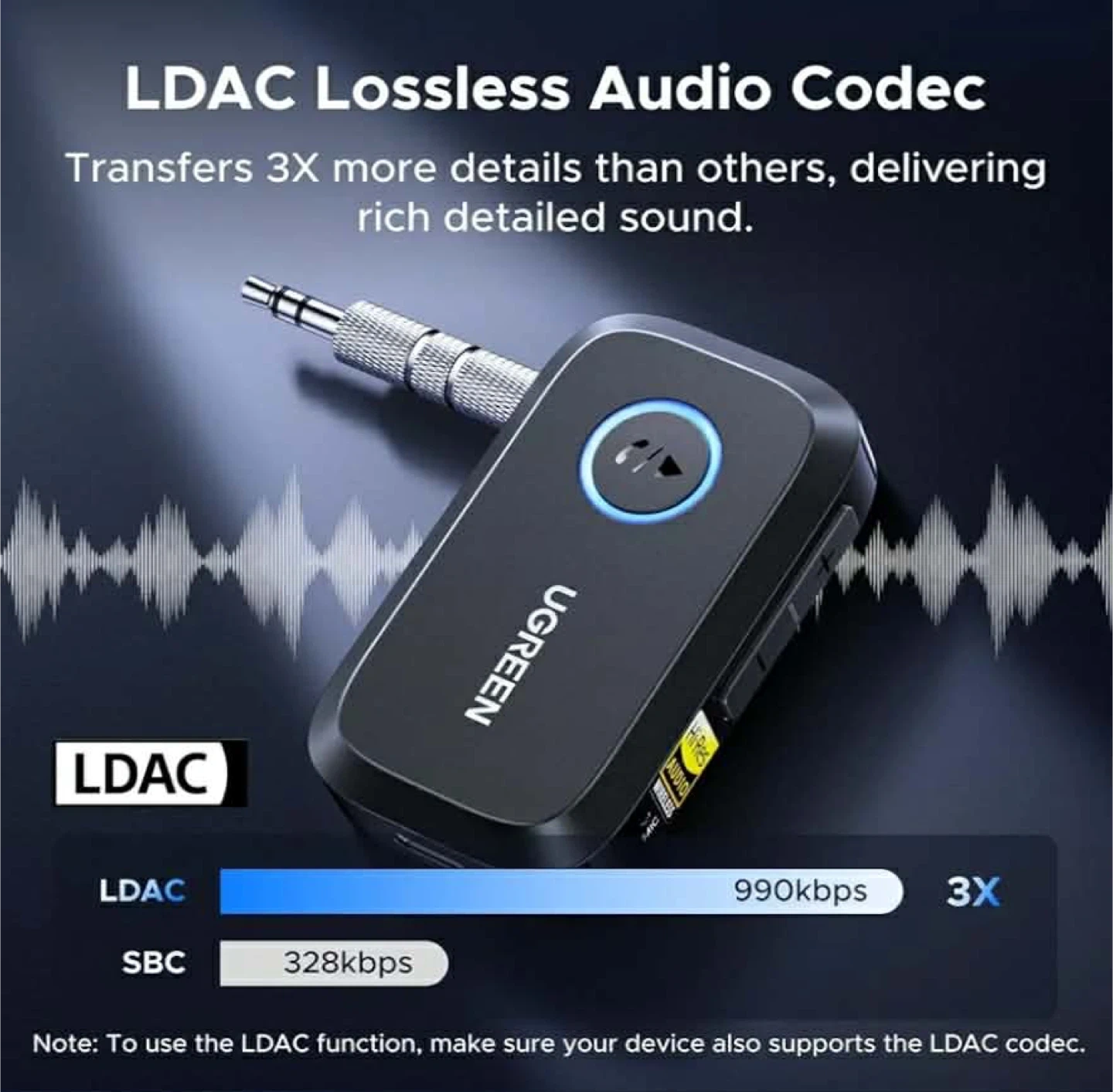 UGREEN Bluetooth 5.0 Receiver with 3.5mm Jack