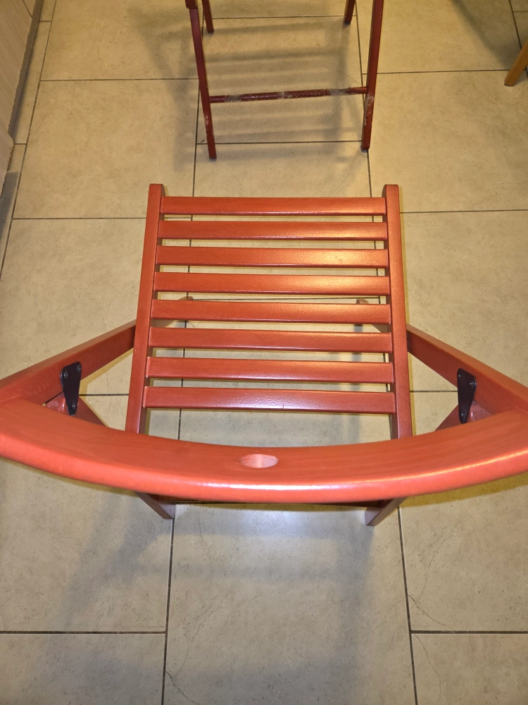 Pair of Red Folding Wooden Chairs