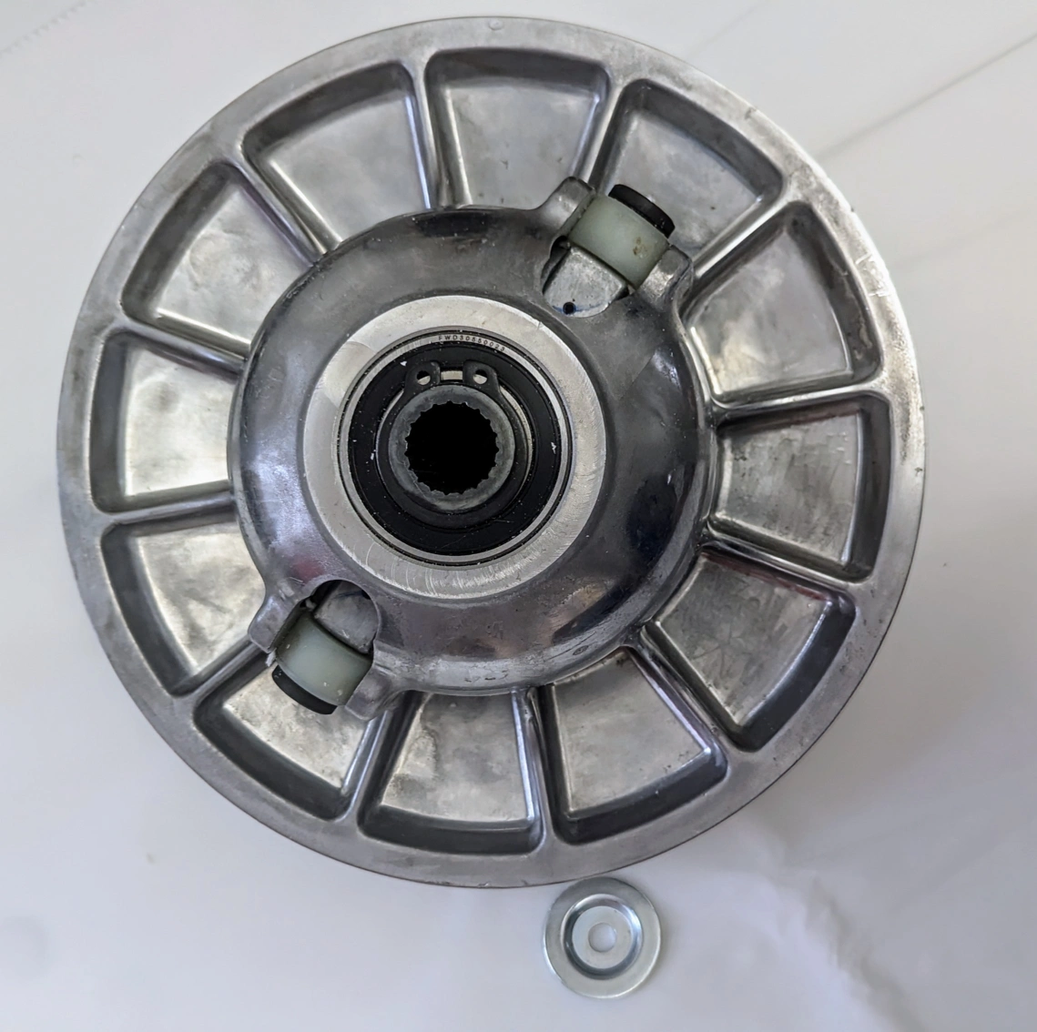 Driven clutch for sale. good condition. Includes one washer. Aluminium construction. Multiple rollers. Suitable for various applications.
