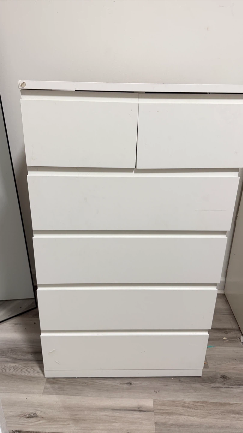 Both are in good condition and very spacious for clothes and storage. The wardrobe has hanging space and shelves, and the dresser has 5 large drawers.