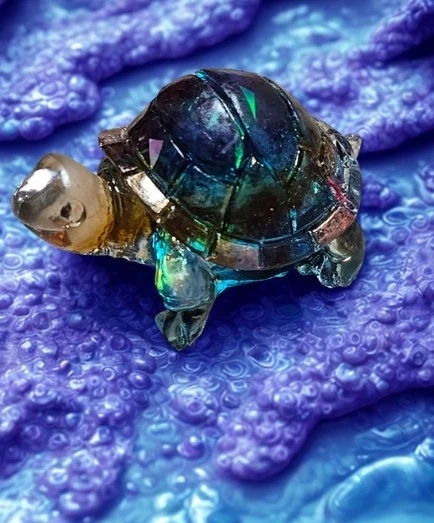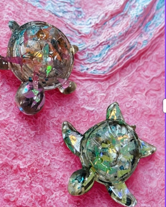 Lot de deux adorables petites tortues faites de résine scintillante. Parfaites pour décorer une étagère ou un bureau. Elles apportent une touche de couleur et de fantaisie à n'importe quel espace.