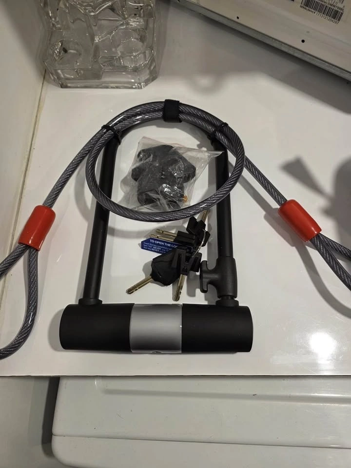 MEC unisex midtown helmet (L/XL) - $40. MEC U-lock and cable combo with 20-42mm U-lock bracket - $40. Both for $70. Lock never used, helmet worn once to try on.