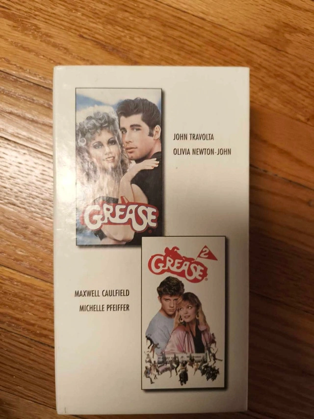 Own a piece of cinematic history with this Grease VHS tape set, featuring both the original 'Grease' and 'Grease 2'. This is a used item, perfect for collectors or fans looking to relive the magic of these classic musicals. Relive the romance, the songs, and the electrifying dance numbers. A fantastic addition to any collection, ready to bring back the nostalgia. Dust off that VCR and get ready for a trip down memory lane! If this ad is up, then yes, it's still available! Cash accepted.