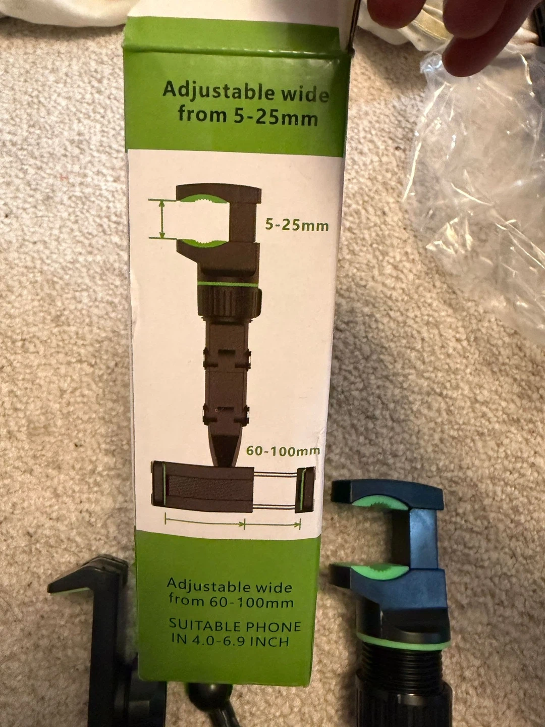 This universal clip cellphone holder offers multi-joint flexible adjustment. It's suitable for phones between 4.0-6.9 inches. The clamp is adjustable wide from 5-25mm.