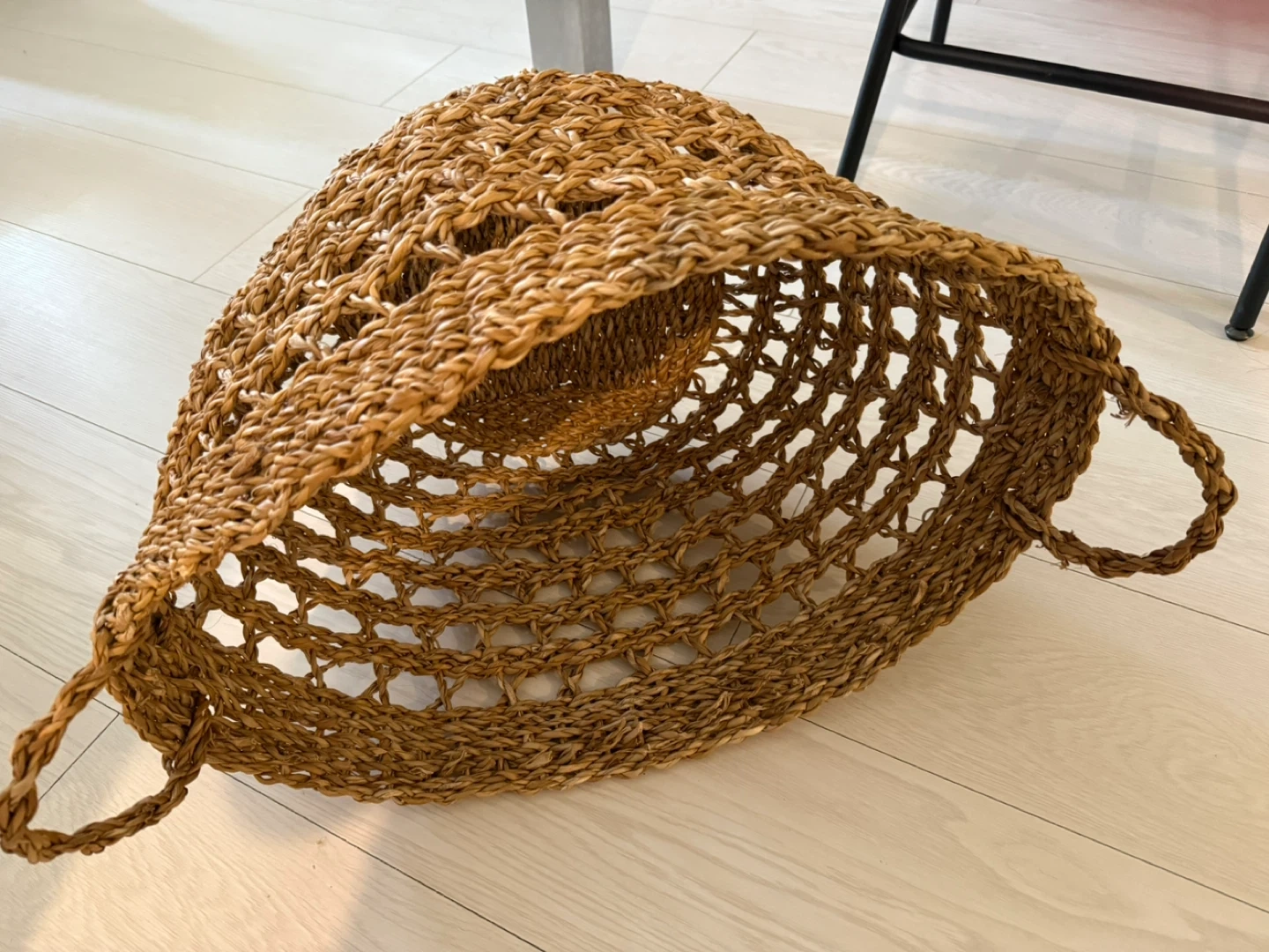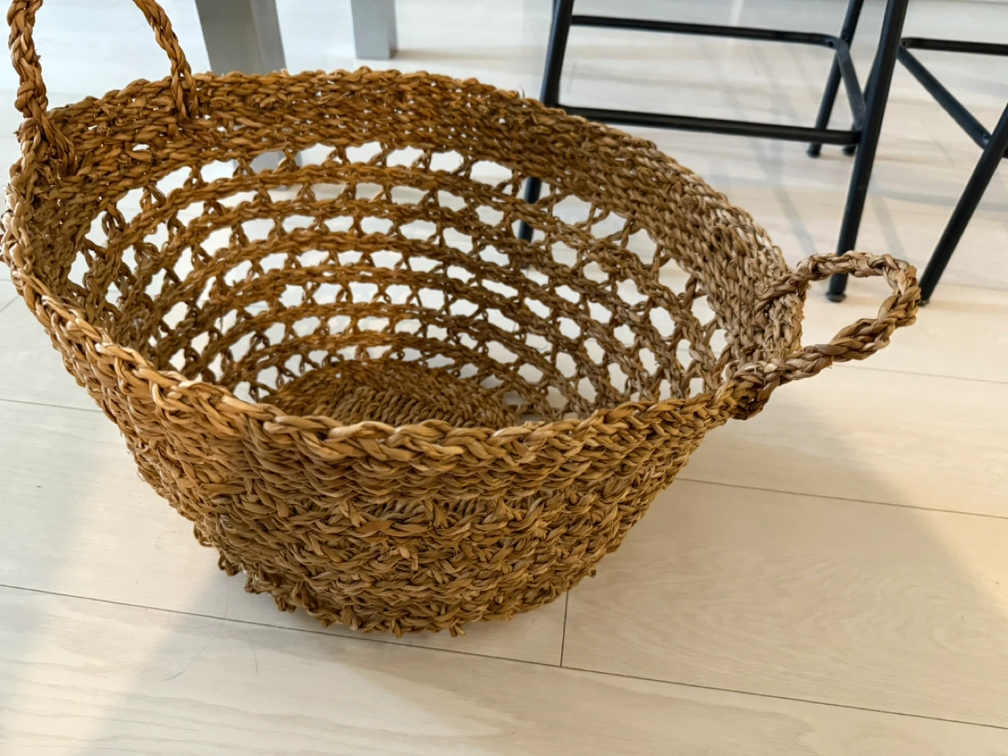 X-Large H&M Home braided seagrass basket with sturdy handles, barely used and kept in storage. Great for blankets and adding a cozy, decorative accent to any room.