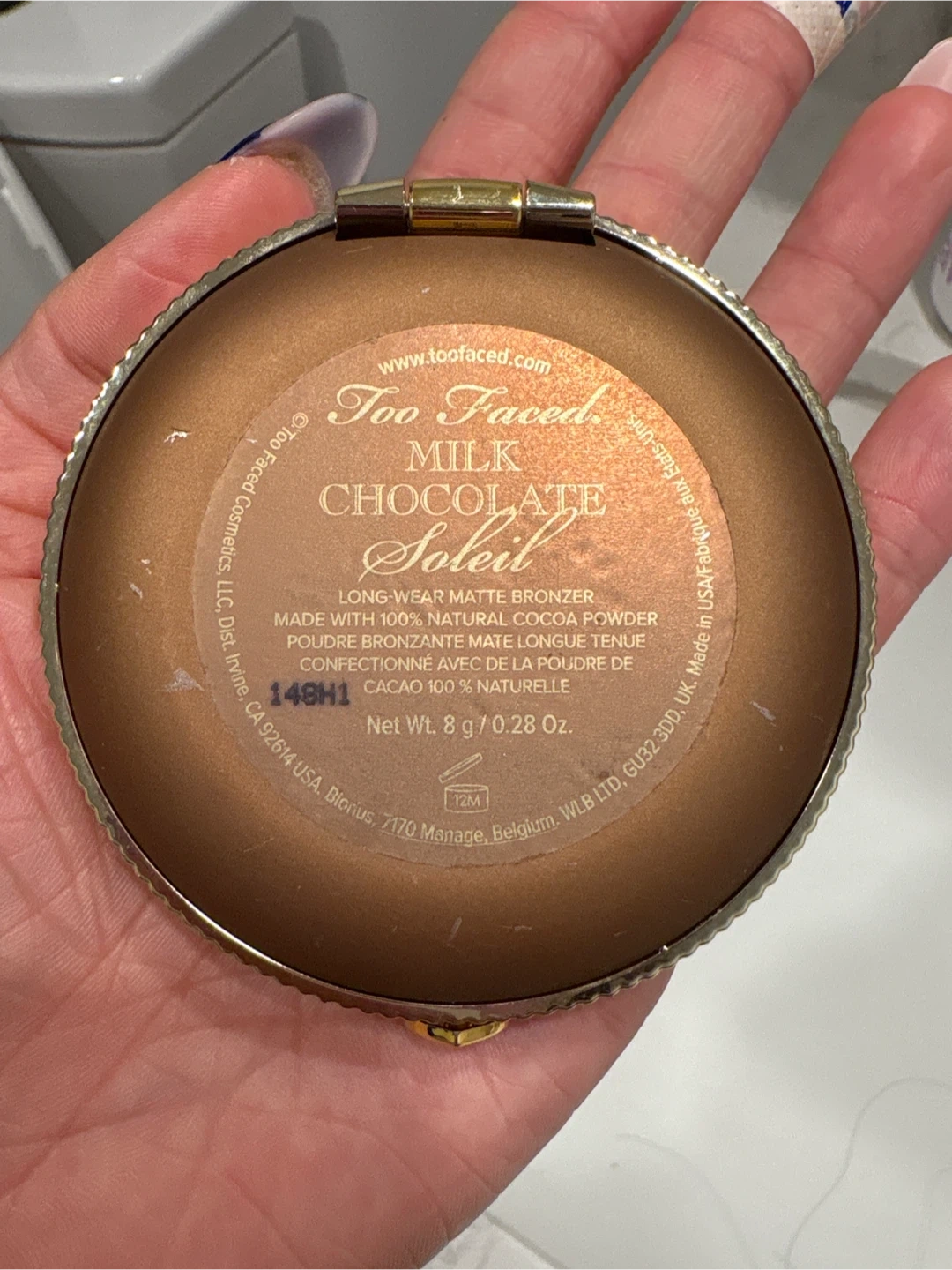 Selling a gently used Too Faced Milk Chocolate Soleil bronzer. It's a long-wear matte bronzer made with 100% natural cocoa powder. Net weight is 8 g / 0.28 oz
