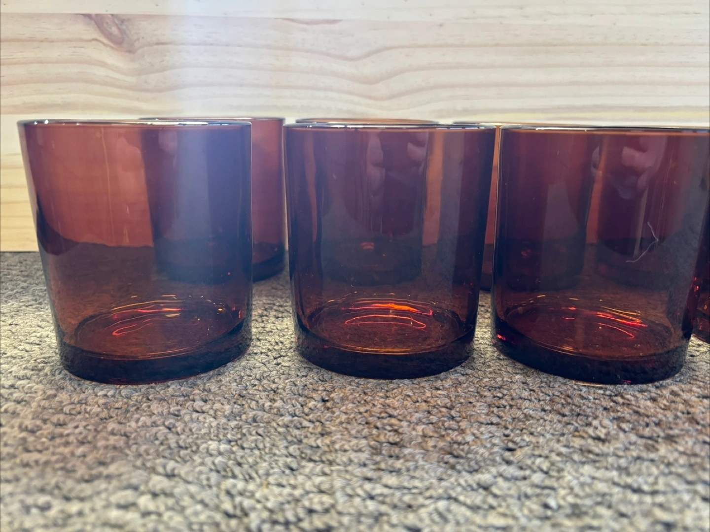 12 pack of amber 12oz candle glasses, use for making your own candles to keep or sell. Recommend hand washing not dishwasher. Glasses do not come with lids.
