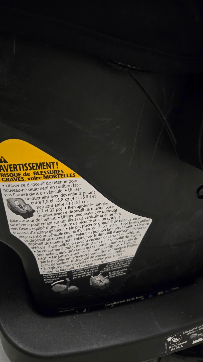Evenflo Embrace infant car seat in grey and black. For infants 4-35 lbs and up to 32 inches. This car seat is made with fabric and plastic materials. It comes with a base and harness.