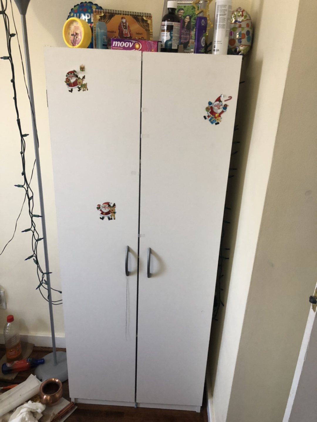 5 feet tall and sufficient depth, can be used to store clothes, books, kitchen storage. Originally bought for 45$.