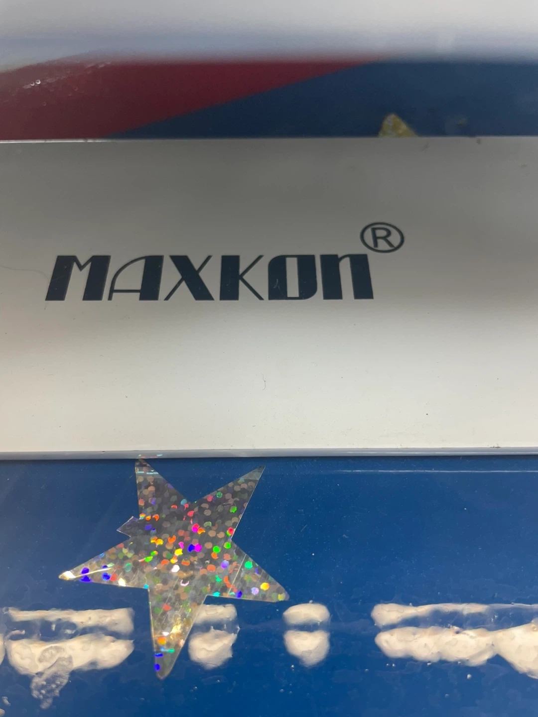 This is a MAXKON vanity mirror with 10 LED bulbs for bright illumination. It's a white, tabletop mirror perfect for makeup application. The mirror has touch controls and can be adjusted.