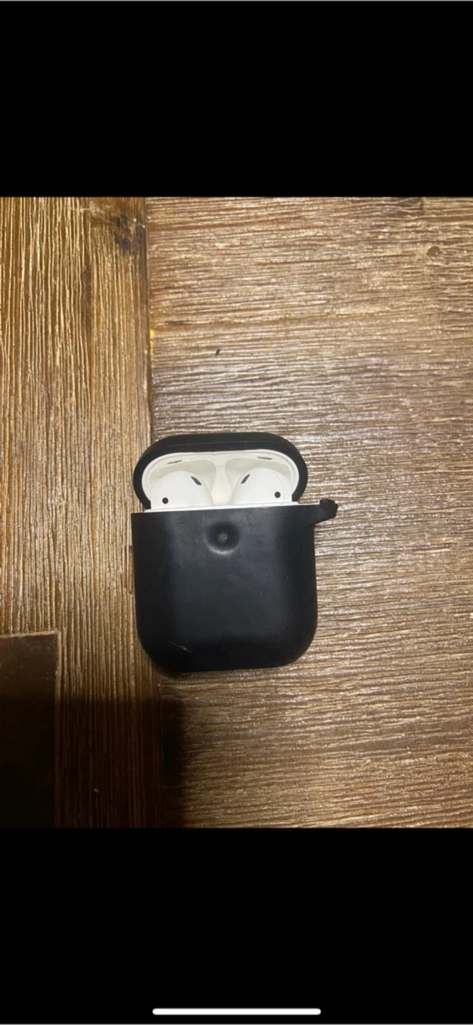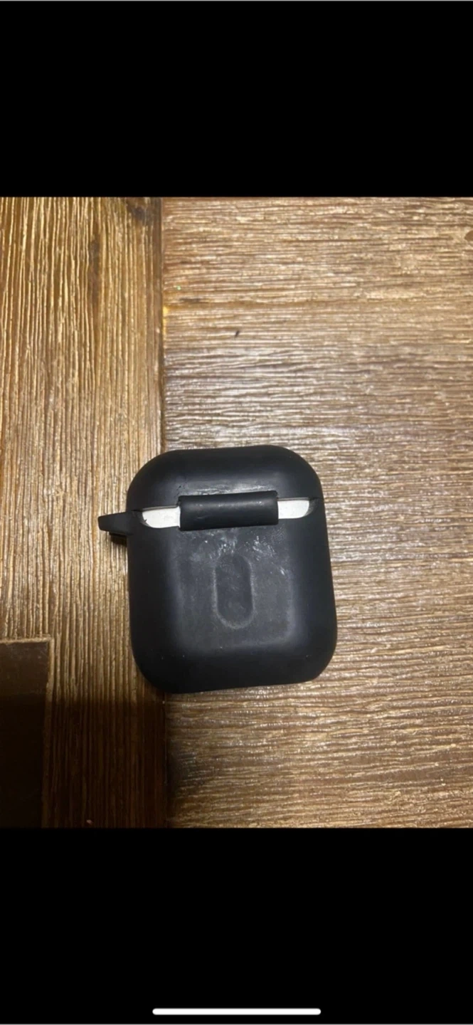 Here are Apple AirPods White Second Generation with a charging case. They're white and come with a black silicone protective case. The charging case is included.
