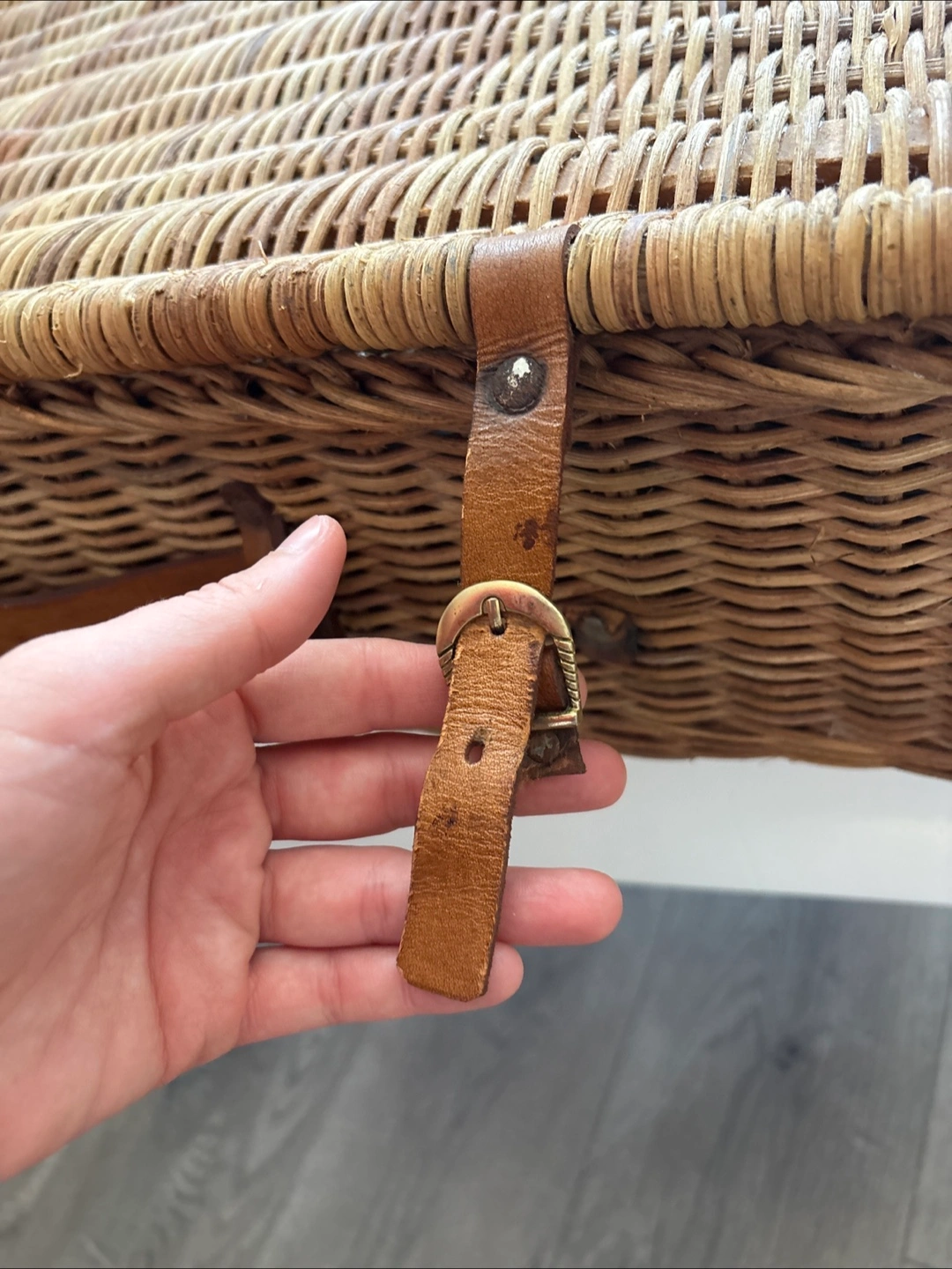 Selling a charming wicker picnic basket set! It comes with plates, cutlery, and a checkered blanket. Perfect for a lovely day out in the park or by the lake!