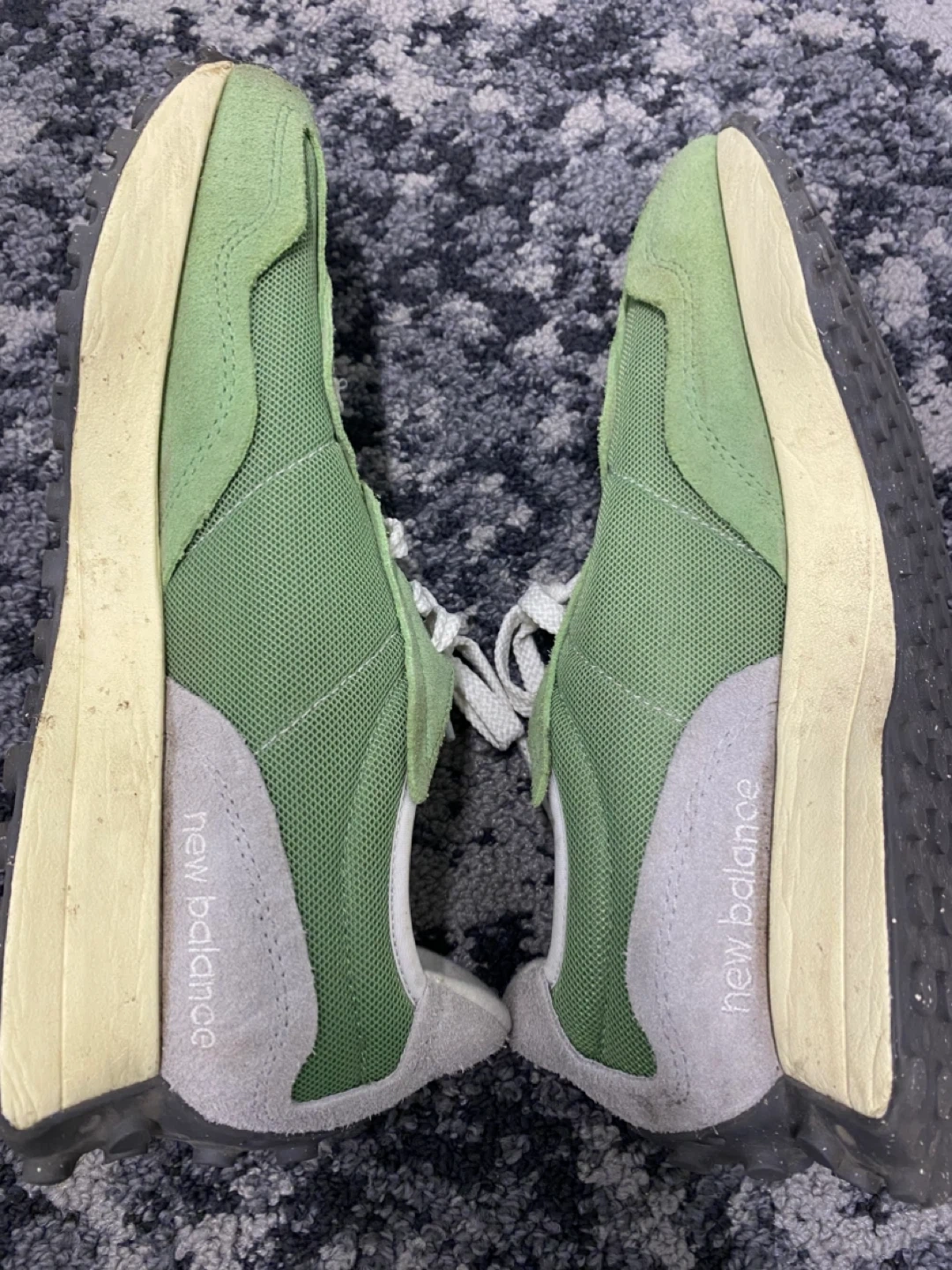 Selling a pair of New Balance 327 sneakers in a fresh green and white colourway! These stylish and comfortable shoes are perfect for everyday wear. Check out the photos for a closer look!