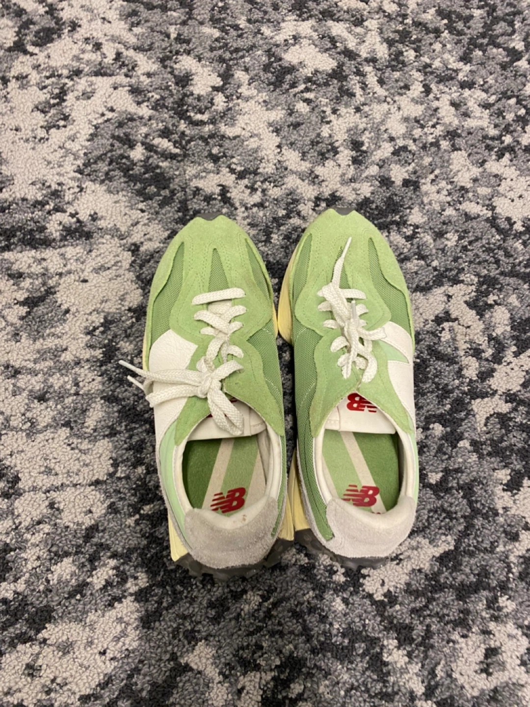 Selling a pair of New Balance 327 sneakers in a fresh green and white colourway! These stylish and comfortable shoes are perfect for everyday wear. Check out the photos for a closer look!