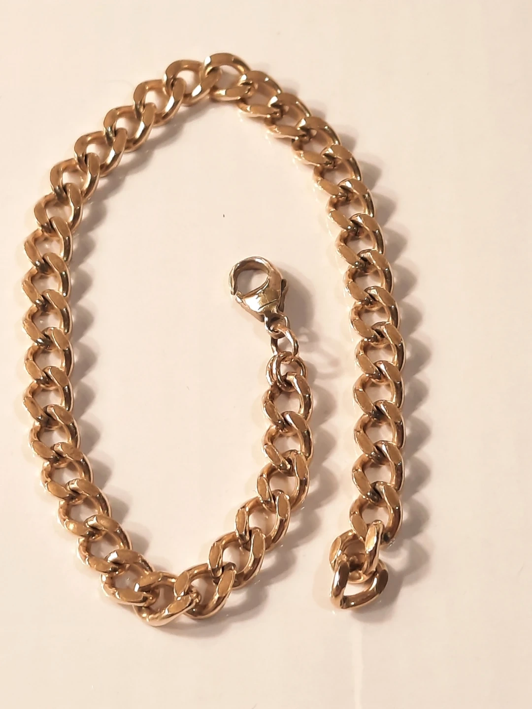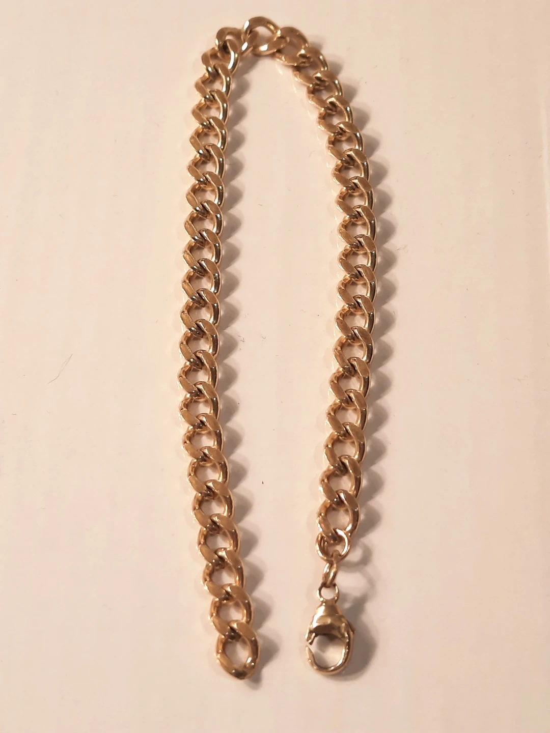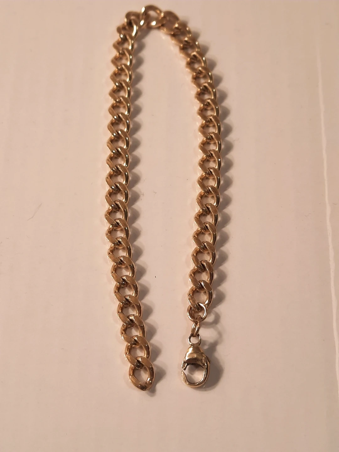 14K Gold filled,stamped on clasp both sides.bracelet with a lobster clasp. Measures approximately 8 inches long. It's a classic accessory that can be worn on its own or layered with other pieces.