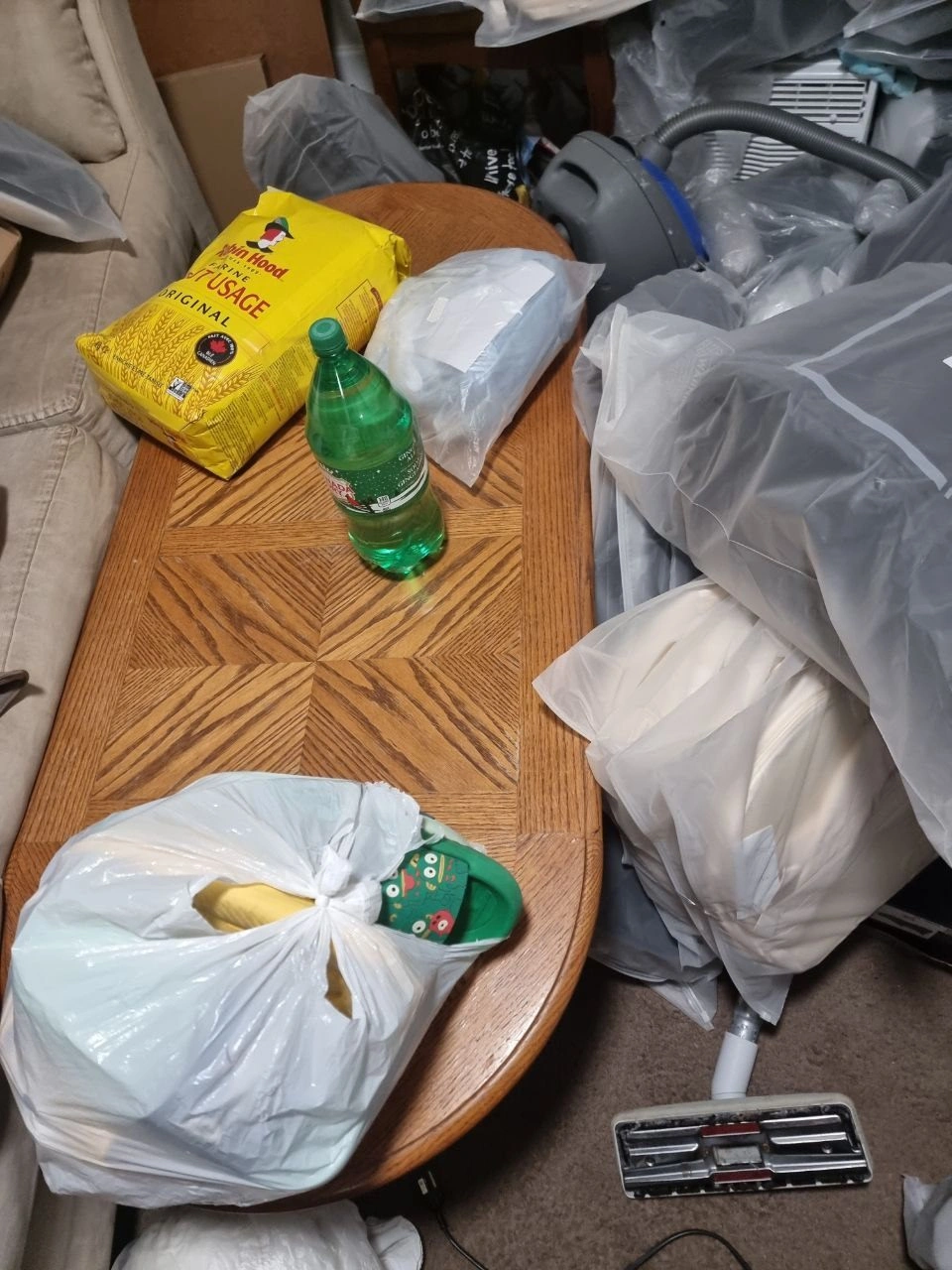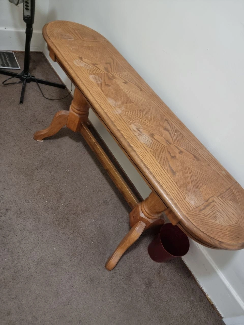 Structurally excellent, but the coffee table top has some cosmetic water marks (see photos). Great for a DIY refinishing project or a student apartment.