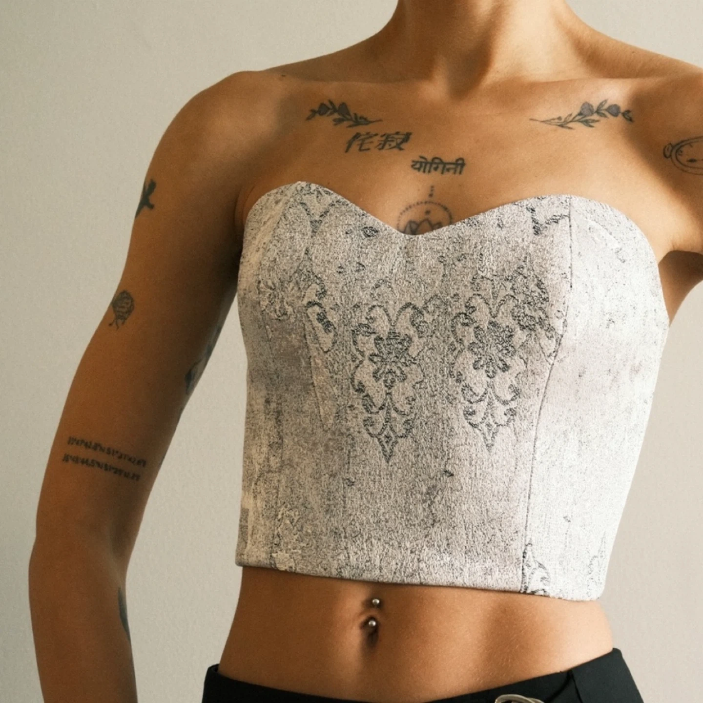 A stunning blend of sophistication and sparkle available in three exquisite colors: Pink, Beige, and Silver. Perfect for adding a touch of luxury to your wardrobe, this crop top is designed to make you shine.
