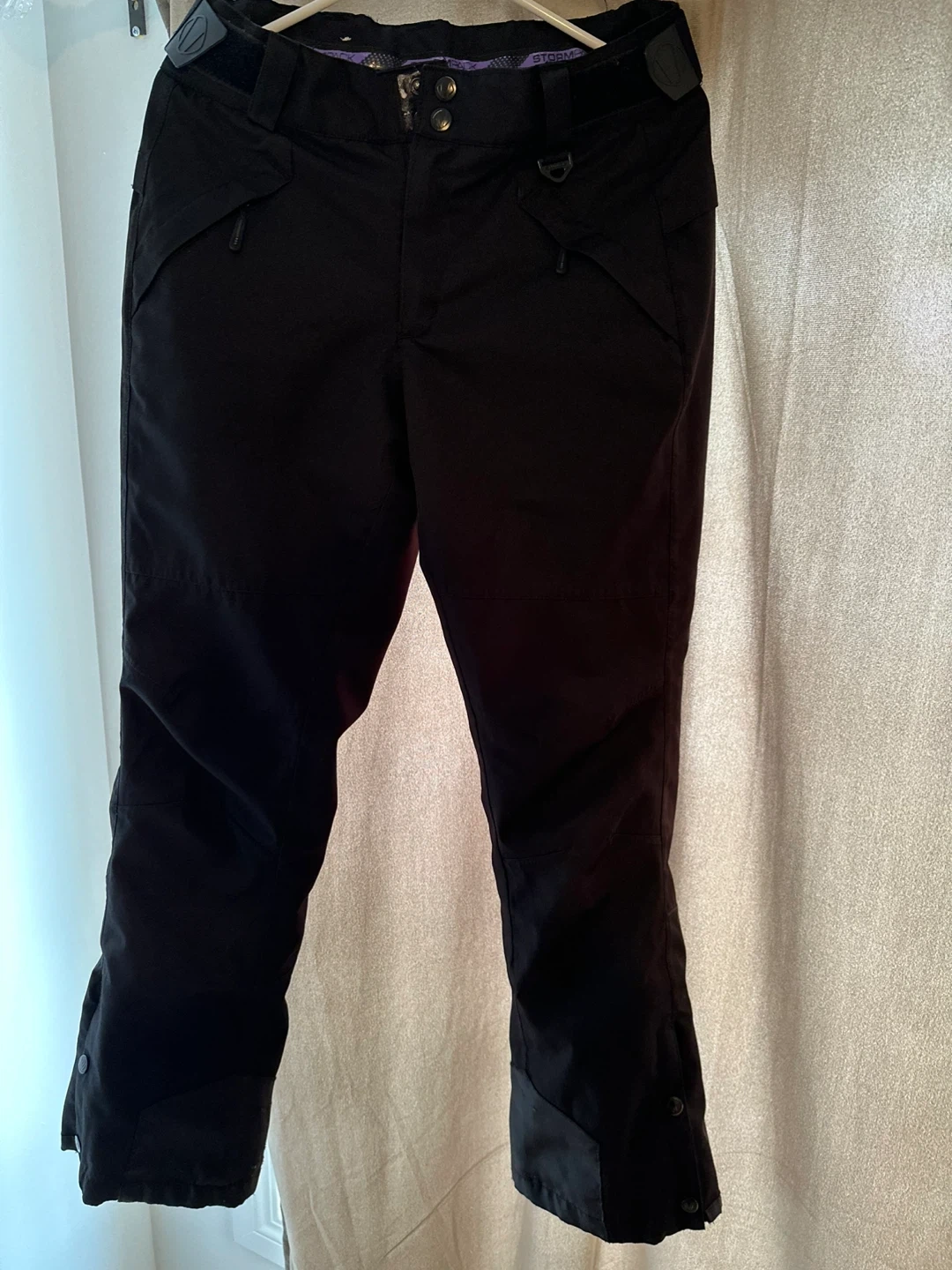Black Columbia ski pants. Waterproof and breathable fabric. Features multiple zippered pockets and adjustable waist. Perfect for hitting the slopes!