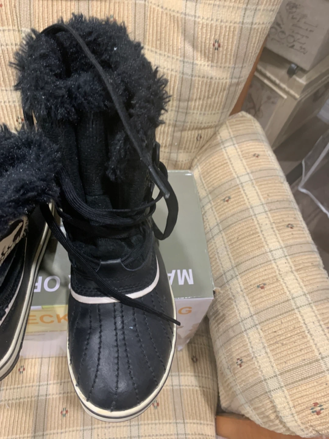Selling a pair of Sorel winter boots in black. They are a size 7 US. Perfect for keeping your feet warm and dry during the winter months! They are in great condition and ready for a new home