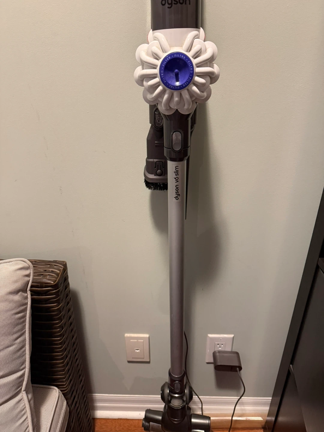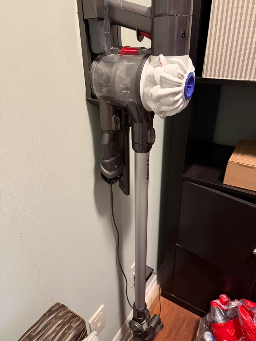 Selling a Dyson V6 Slim cordless vacuum! It's in great condition and comes with the charger, 2 accessories and wall mount. Perfect for quick cleanups around the house