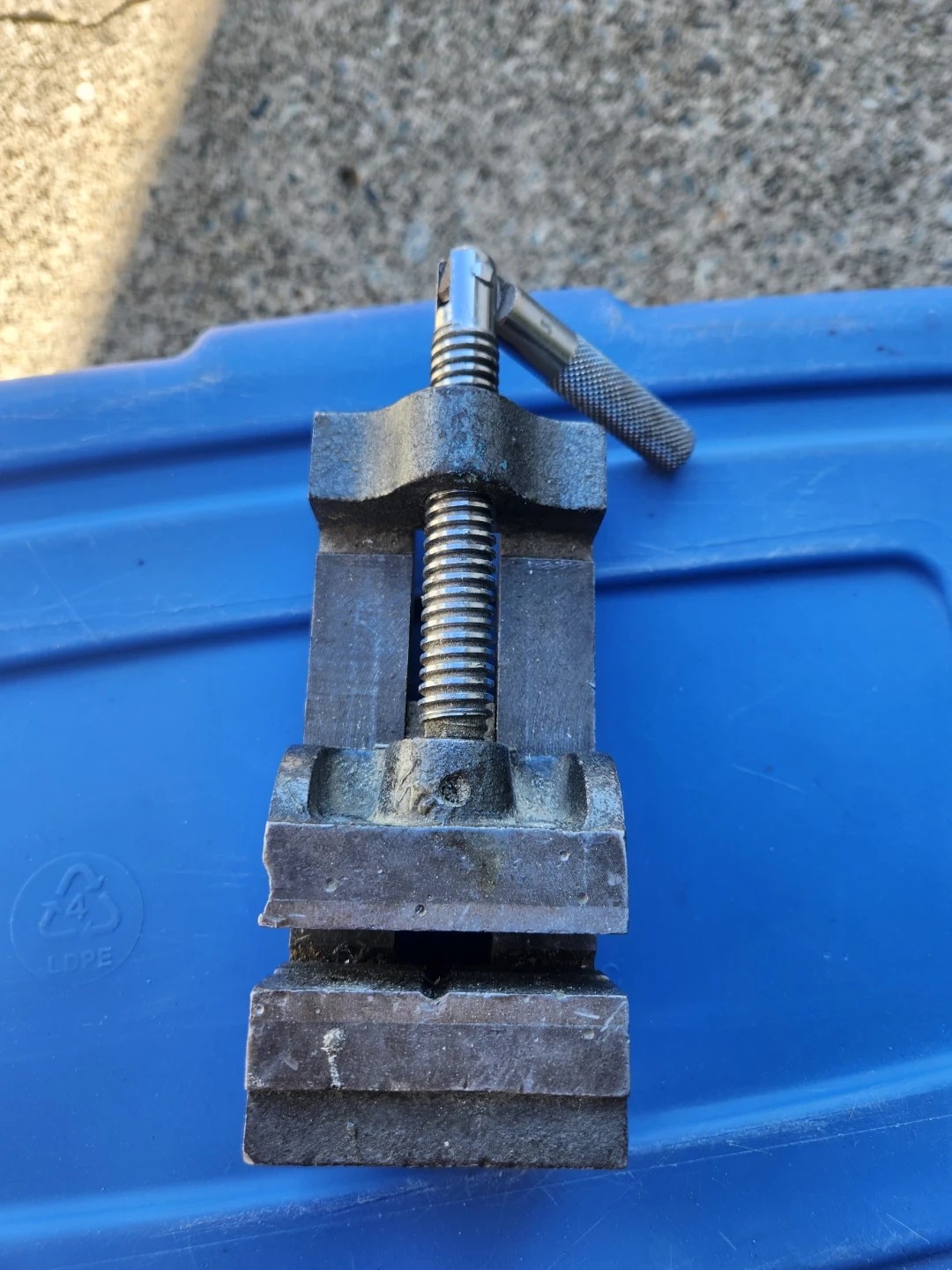 Solid machinist vise / precision screw clamp – heavy-duty steel construction.