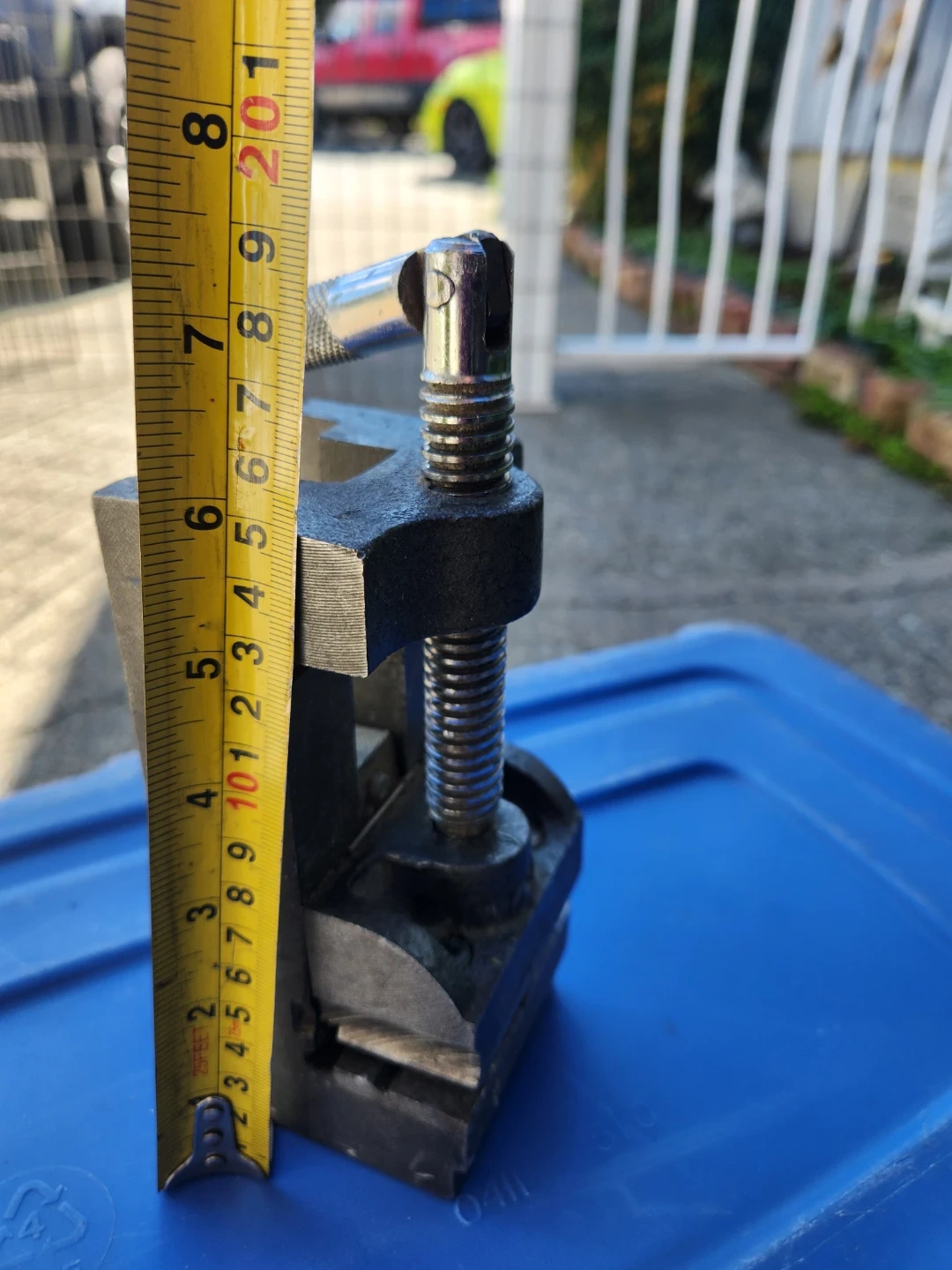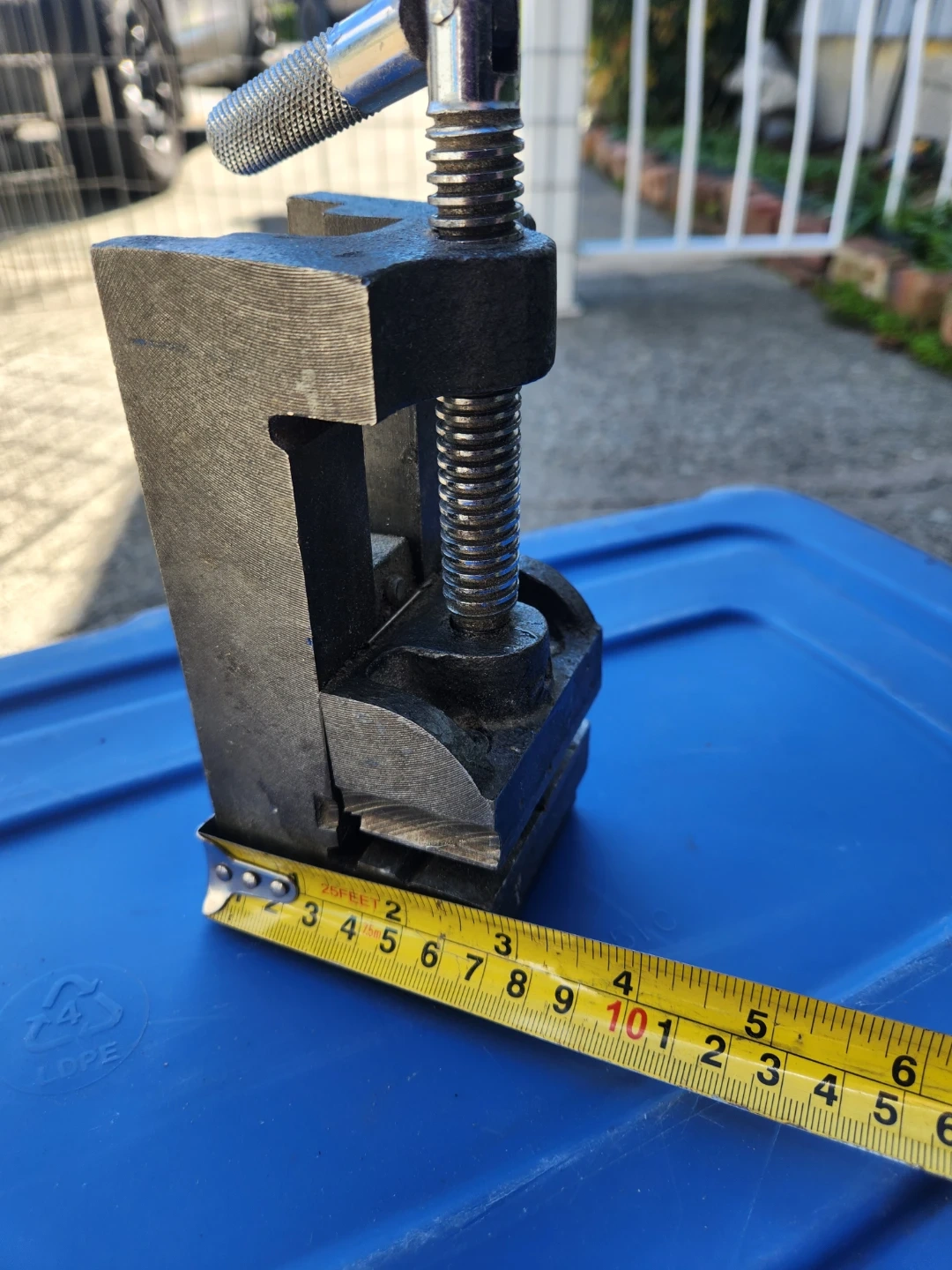 Solid machinist vise / precision screw clamp – heavy-duty steel construction.