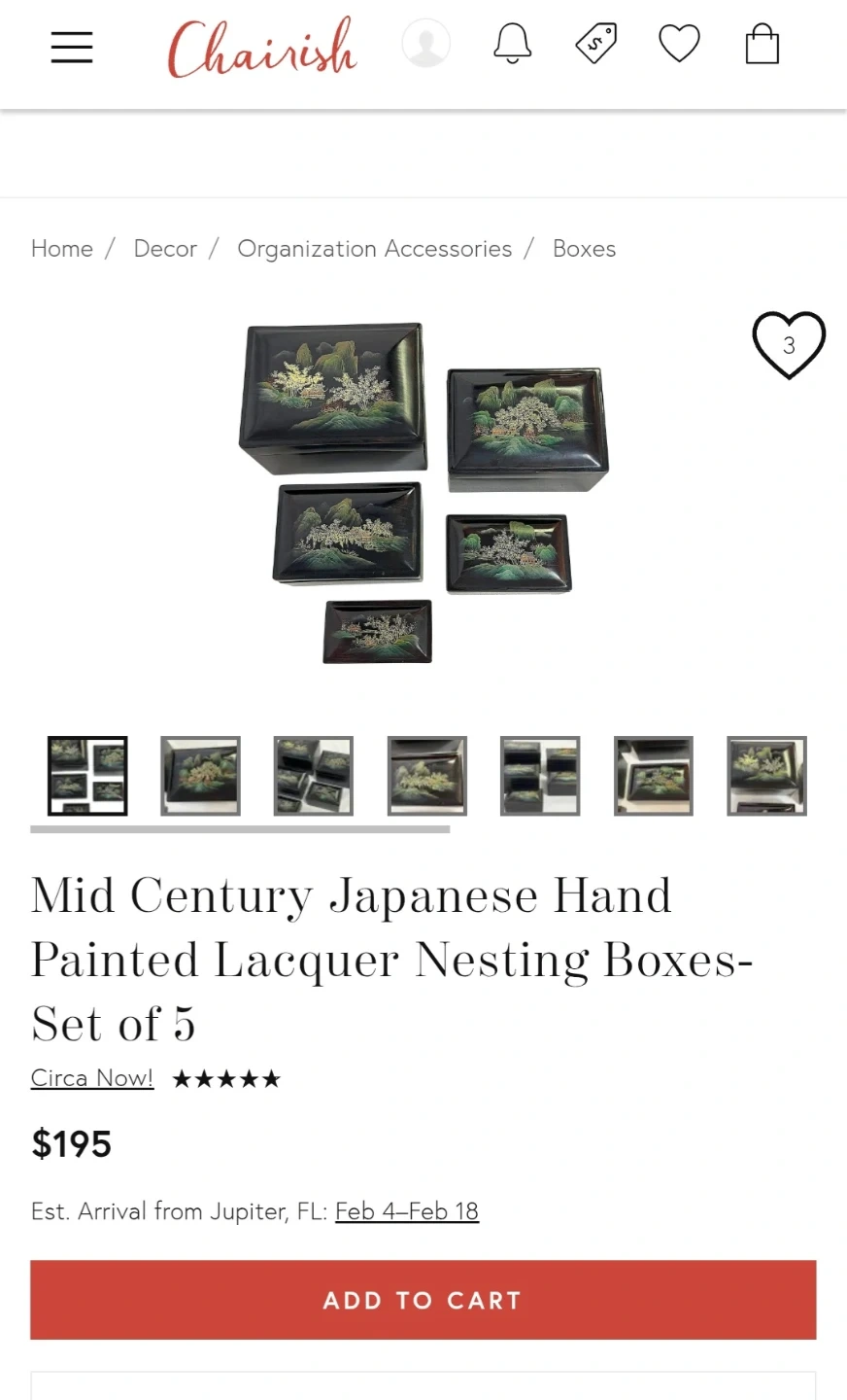 NEW Set of 3 Asian Hand-Painted Black Lacquer Nesting Boxes $12