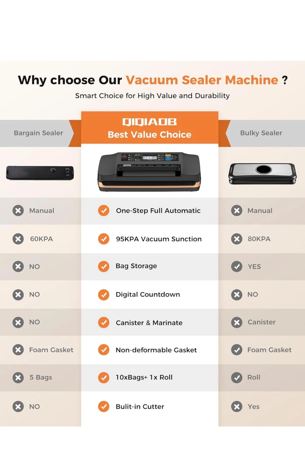 63I'm selling a 95Kpa Vacuum Sealer Machine in black. It's a commercial full automatic food sealer with a powerful sealing system. Key features include: - Built-in cutter - Easy-lock handle - Built-in bag storage - Durable silicone gasket - Vacuum chamber - Countdown display It also has a full water alert system