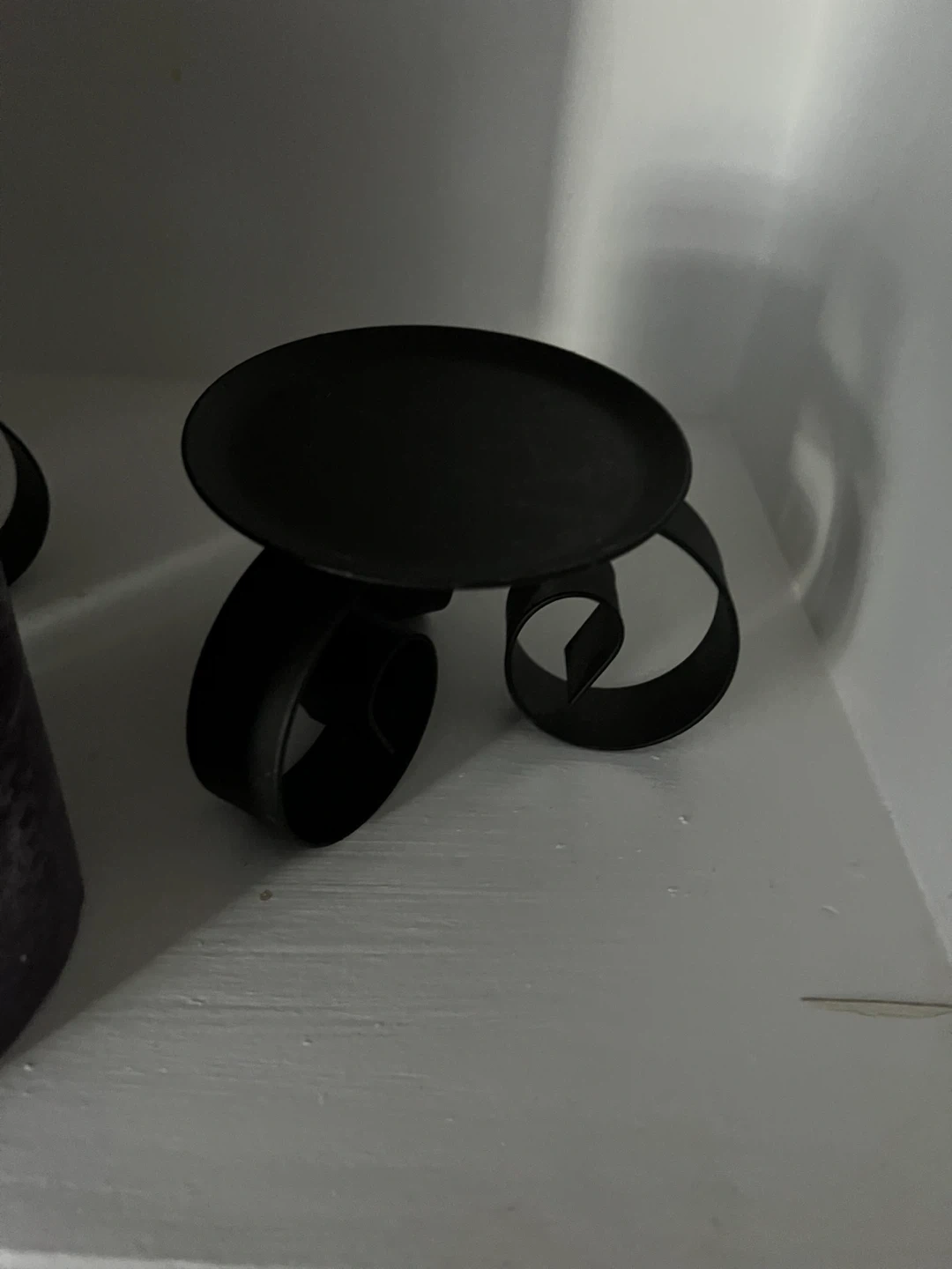 Pair of Purple Pillar Candles on Black Metal Holders