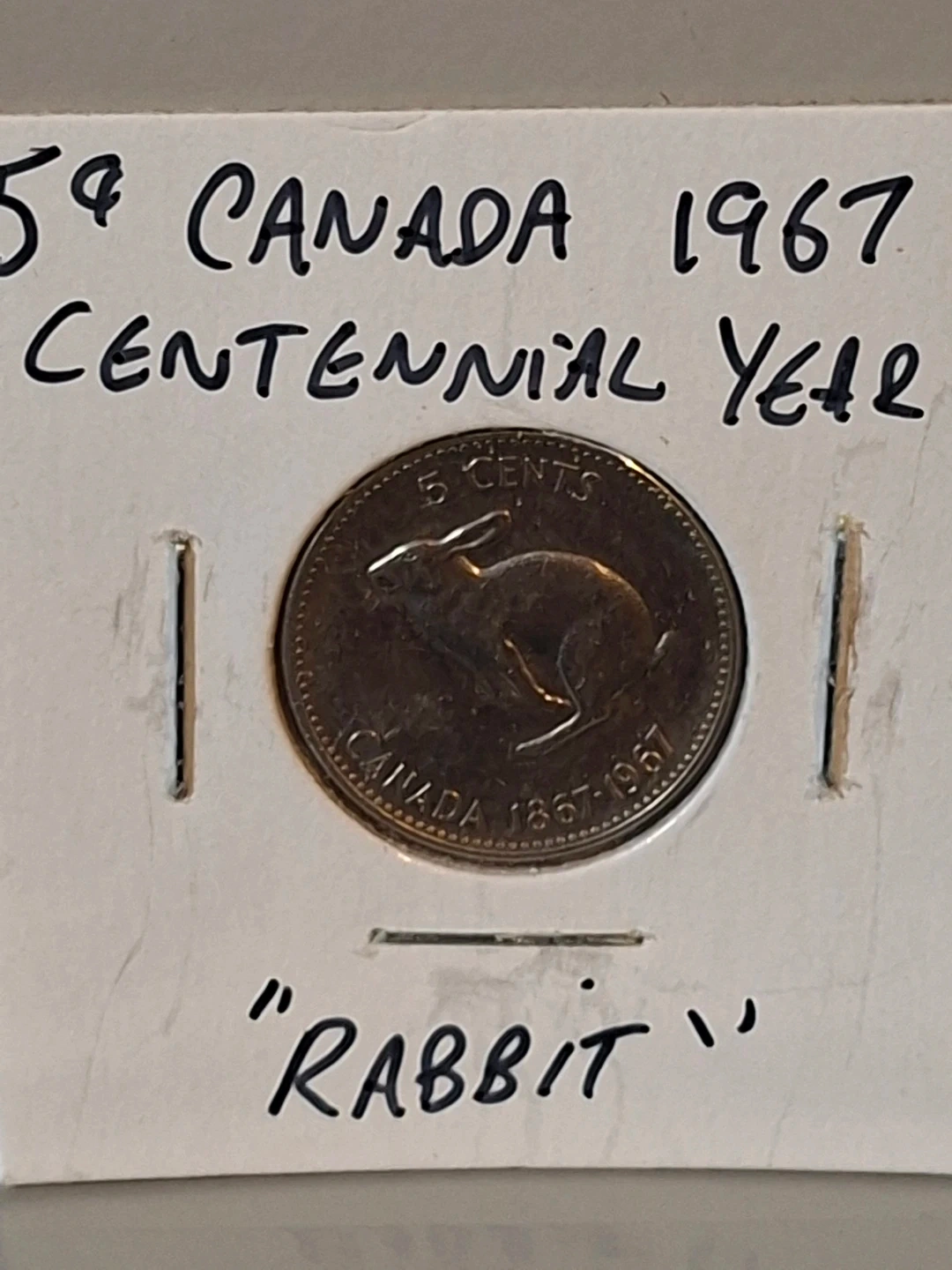 Buy & Sell1967 Canadian 5 Cent "Rabbit" Coin1967 Canadian 5 Cent "Rabbit" Coin$3This is a 1967 Canadian 5 cent coin, commemorating the Centennial Year. It features the "rabbit" design on one side. A nice piece for collectors!WHERE TO MEETCheck LocationView MapSELLERverifiedChrisBig Bend30727 reviews0 chats·1 favorites·13 viewsSEND CHAT TO SELLERHi Chris! I’m interested in your listing.Hi Chris! I’m interested in your listing.Get the Karrot app to chatSign In to chat
