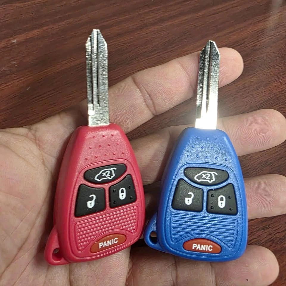 This is a cool and colorful remote key, perfect for your Dodge, Jeep, or Chrysler vehicle. It has 4 buttons: Lock, Unlock, Trunk/Hatch Release, and Panic. The FCC ID is KOBDT04A and it operates at 315 MHz. It's compatible with a wide range of models including Chrysler Aspen (2007-2009), 200 (2011-2014), 300 (2005-2007), PT Cruiser (2006-2010), Sebring (2007-2014); Dodge Avenger (2008-2014), Caliber (2007-2012), Charger (2005-2007), Dakota (2004-2013), Durango (2004-2013), Magnum (2005-2007), Nitro (2007-2012), Ram (2006-2010); Jeep Commander (2006-2007), Grand Cherokee (2005-2007), Liberty (2008-2012), Compass (2007-2016), Patriot (2010-2016), Wrangler (2007-2015); and Mitsubishi Raider (2006-2009). This key can also replace OEM part numbers: 05135670, 05135670AA, 05175786AA, 05179513, 056038751, 56053000AD, 56053000AH, 68026372, OHT692427AA, and OHT692713AA. Available for local meet-ups around Chicagoland.