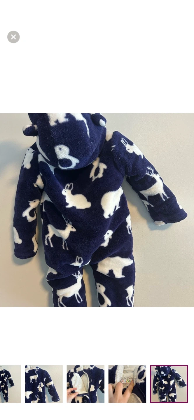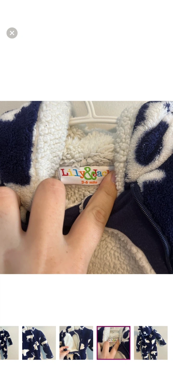 Lily & jack brand. Double zip up thick fleece bunting suit. Navy blue with white animal print. Size 3/6m. Brand new condition
