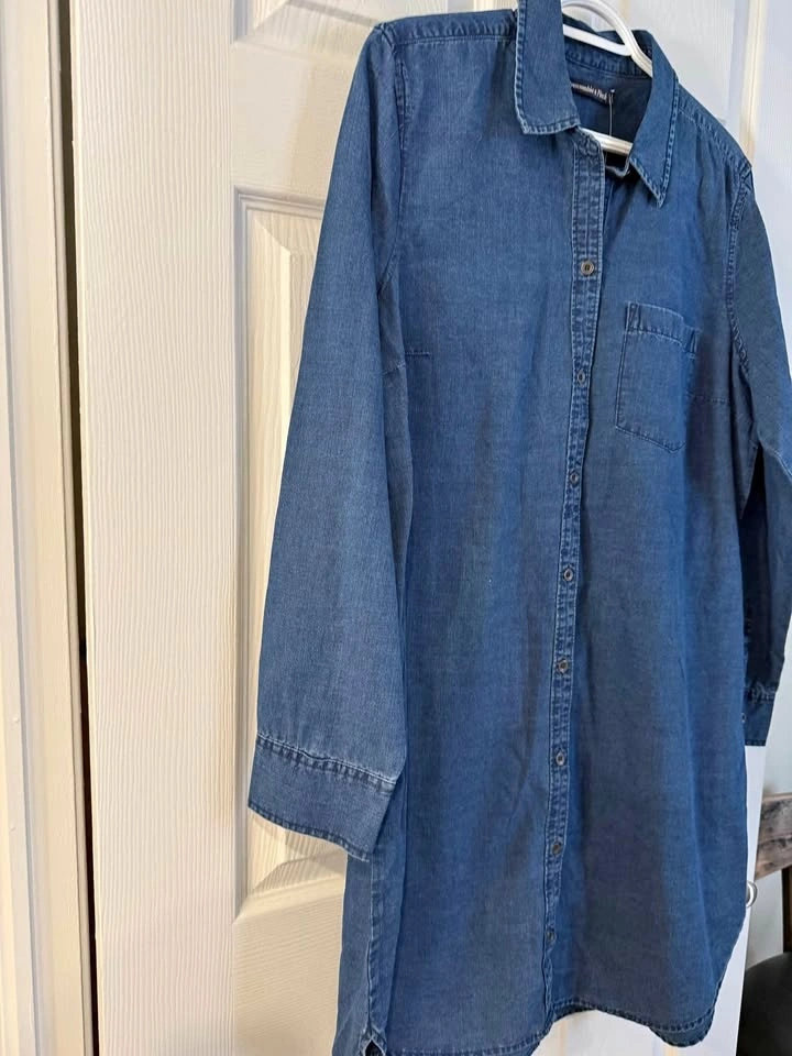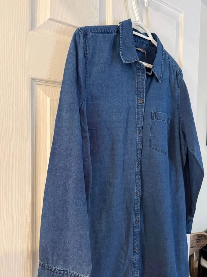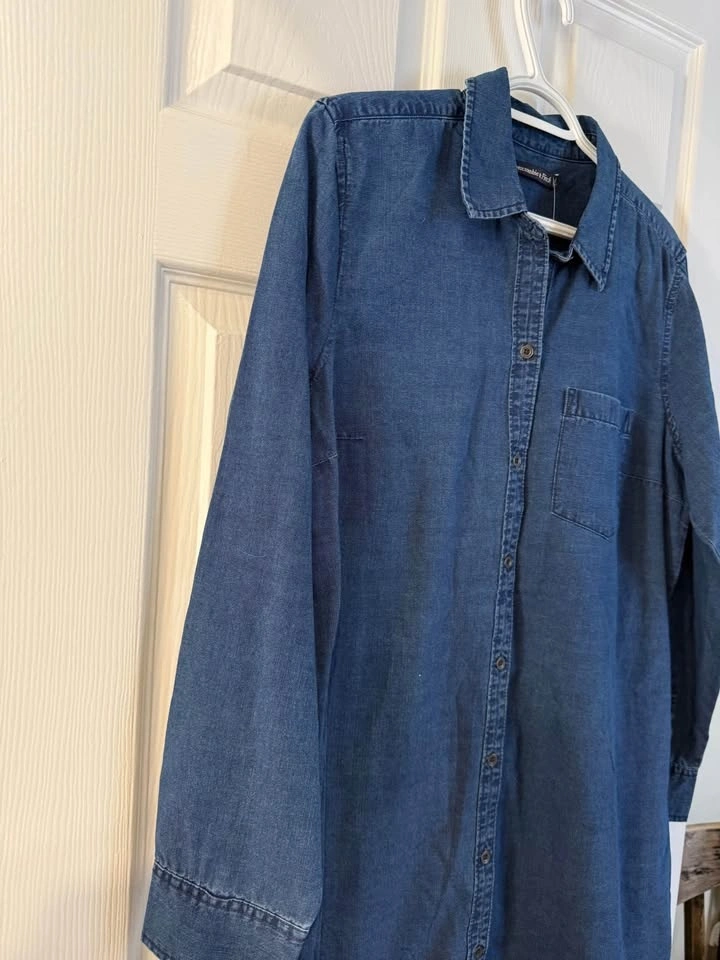 Classic Abercrombie & Fitch denim shirt. Blue button-up style. Has long sleeves and a chest pocket. Great for layering or wearing on its own. Size is extra large. New with tags.