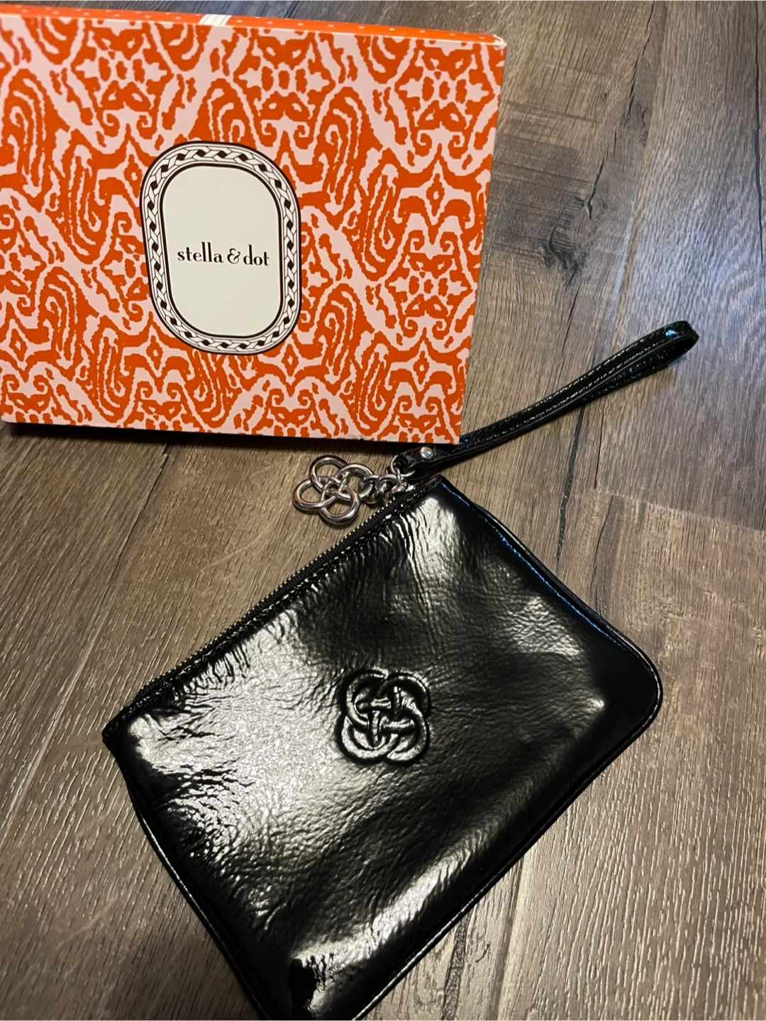 Stella & Dot Black Patent Leather Wristlet Clutch