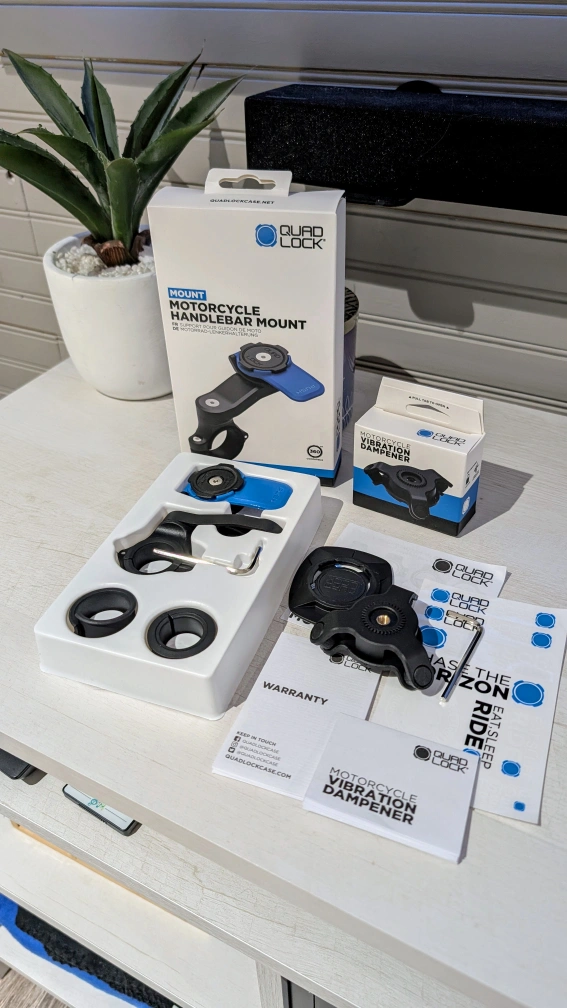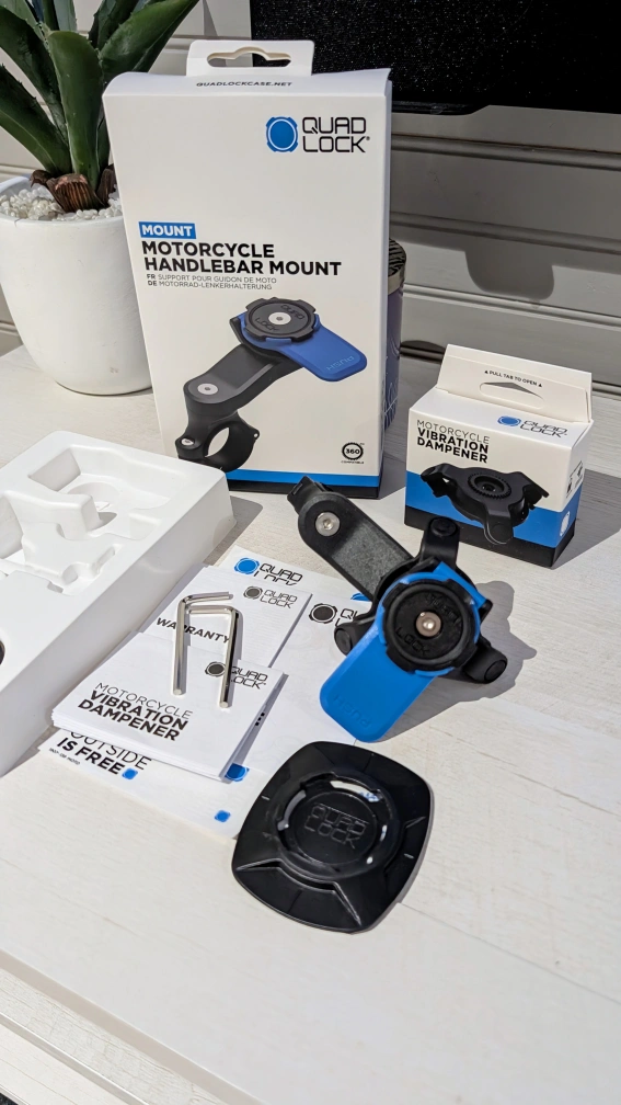 I have a brand new in box, never used, QuadLock handle bar mount, vibration dampener, and phone/case 3M attachment (if you don't have a specific QuadLock case).