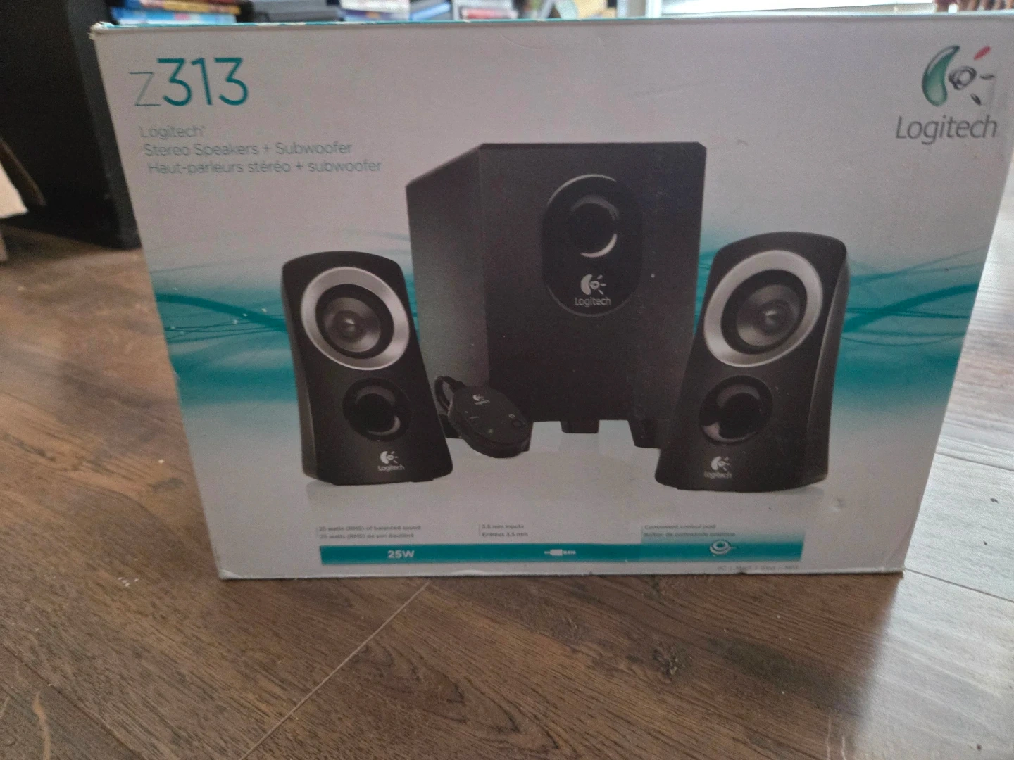 Buy & SellLogitech Z313 Stereo Speakers + SubwooferLogitech Z313 Stereo Speakers + Subwoofer$54Logitech Z313 stereo speakers and subwoofer set. This system delivers 25 watts of RMS power. Includes a convenient control pod for easy access.ConditionLike newBrandLogitechWHERE TO MEETCheck LocationView MapSELLERverified209054Georgetown600 reviews0 chats·0 favorites·2 viewsSEND CHAT TO SELLERHi 209054! I’m interested in your listing.Hi 209054! I’m interested in your listing.Get the Karrot app to chatSign In to chat