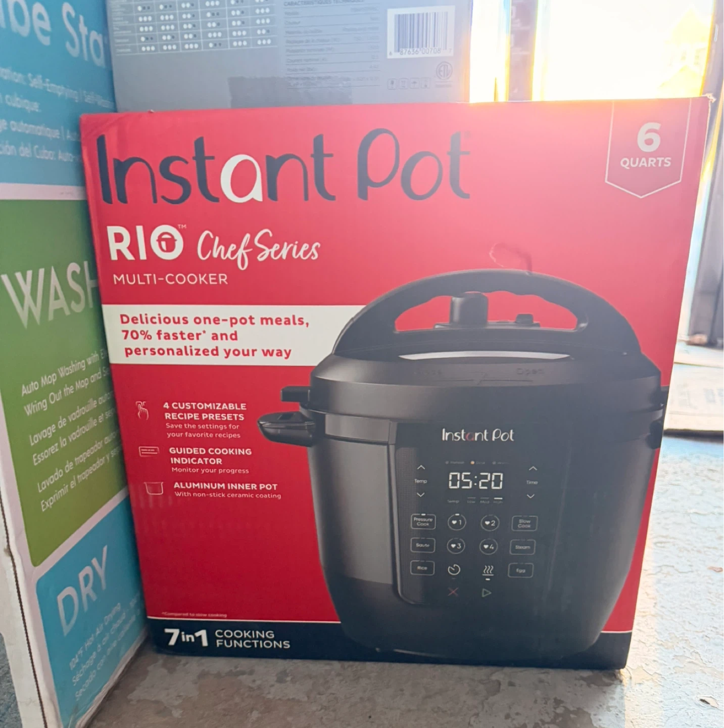 This Instant Pot RIO Chef Series multi-cooker is 6 quarts and has 7-in-1 cooking functions. It features 4 customizable recipe presets and an aluminum inner pot with non-stick ceramic coating. Its guided cooking indicator helps you monitor your progress.