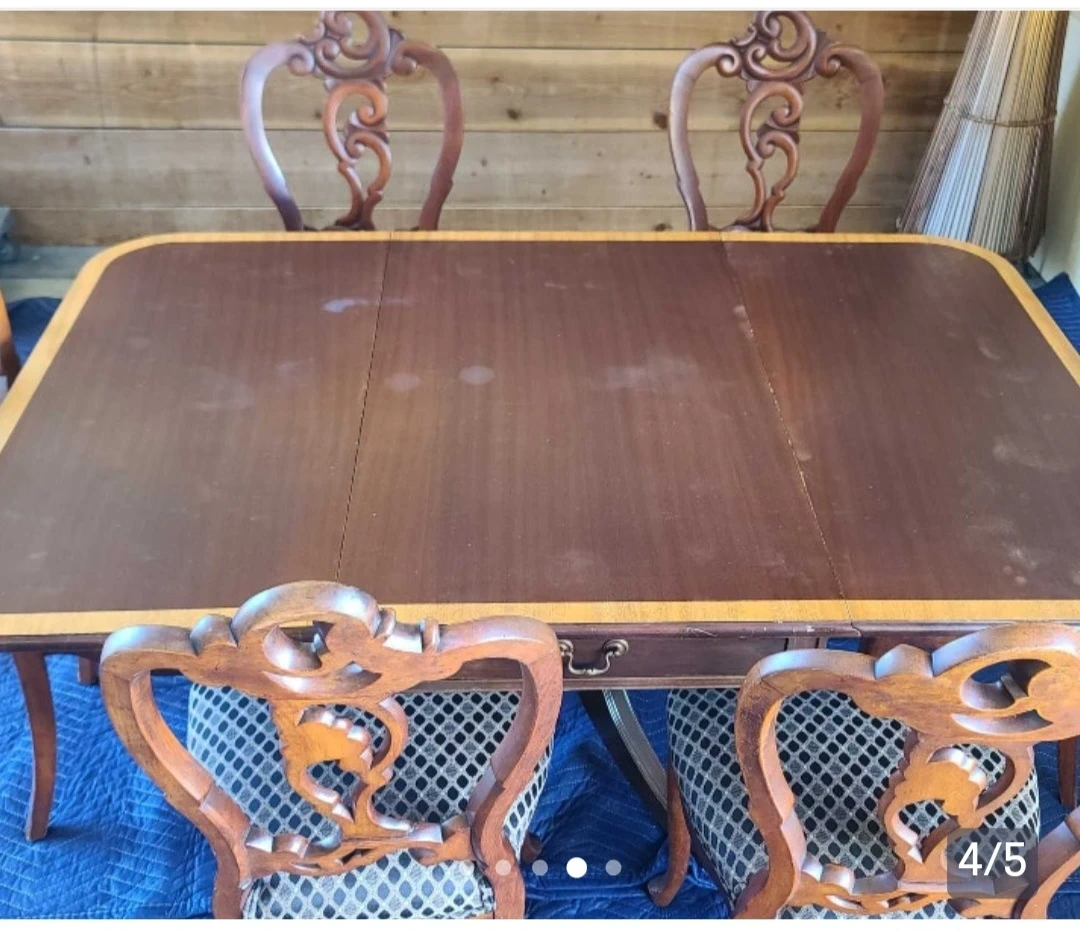 Antique Dining Table with 6 Ornate Chairs