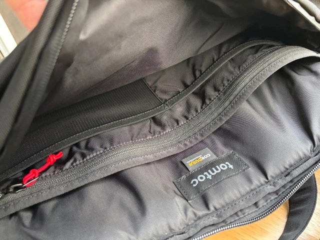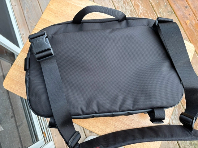 Bag is brand new, wasnt used and has no marks or scratches. It can fit a 14” laptop and other edc items. Material feels very premium and its water resistant. Feel free to message if you have any questions!