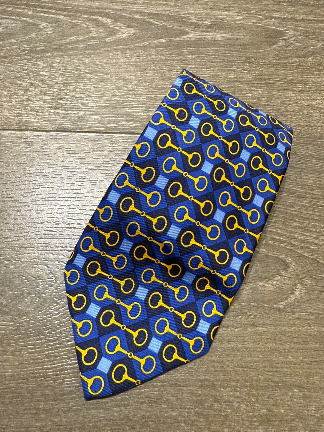 Gucci Silk Tie - Blue & Gold Pattern made in Italy