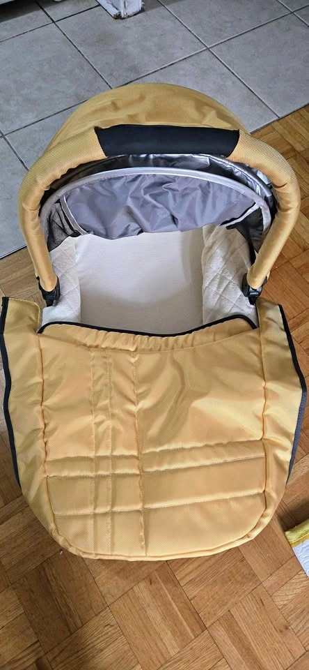 Designed to allow the baby to lie completely flat, making it suitable for naps on the go or overnight sleeping. Features a breathable mattress and padded interior for infant comfort. It can be attached directly to the stroller frame without the need for additional adapters. Includes an extendable UPF 50+ sun canopy and a boot cover. The bassinet can be removed from the stroller and carried using the handle, or used as a standalone sleeper.