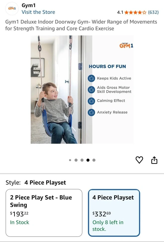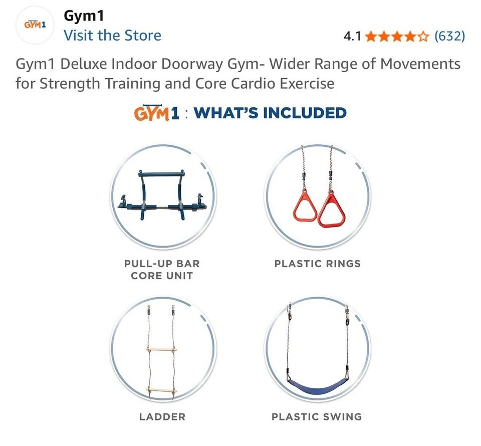 Transform any doorframe into an epic adventure zone with the Gym1 Doorway Swing Set. This versatile indoor gym offers a fun mix of a pull up bar, indoor swing, and kids exercise equipment for endless imagination. Includes a pull-up bar and grip rings. Kids and adults alike can enjoy a blend of fitness and play that encourages an active lifestyle. Crafted from heavy-duty steel, this indoor bar setup supports up to 300 lbs, perfect for kids and adults. It’s a reliable choice for those rainy days when playing outside isn't an option. Designed to fit door frames from 25" to 36" wide, this indoor pull up bar doorway system is a breeze to set up with no drilling needed. Adjust the swing height for different users and let the fun begin. Encourage a healthy lifestyle with this engaging indoor doorframe swing that helps kids stay active and reduce screen time. It's a perfect blend of a doorway swing set and kids workout equipment for the whole family.
