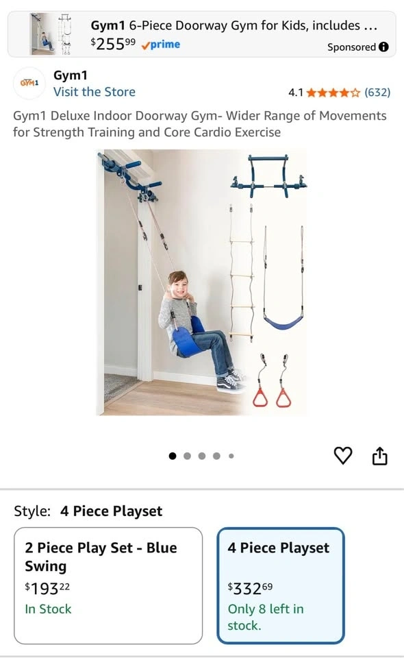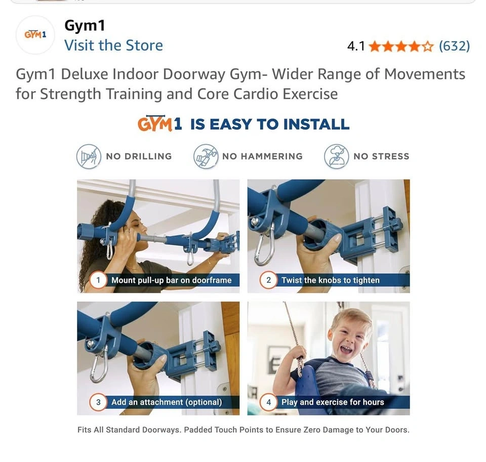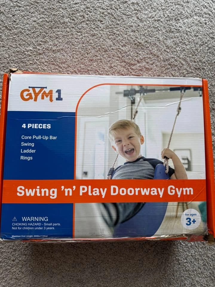 Transform any doorframe into an epic adventure zone with the Gym1 Doorway Swing Set. This versatile indoor gym offers a fun mix of a pull up bar, indoor swing, and kids exercise equipment for endless imagination. Includes a pull-up bar and grip rings. Kids and adults alike can enjoy a blend of fitness and play that encourages an active lifestyle. Crafted from heavy-duty steel, this indoor bar setup supports up to 300 lbs, perfect for kids and adults. It’s a reliable choice for those rainy days when playing outside isn't an option. Designed to fit door frames from 25" to 36" wide, this indoor pull up bar doorway system is a breeze to set up with no drilling needed. Adjust the swing height for different users and let the fun begin. Encourage a healthy lifestyle with this engaging indoor doorframe swing that helps kids stay active and reduce screen time. It's a perfect blend of a doorway swing set and kids workout equipment for the whole family.