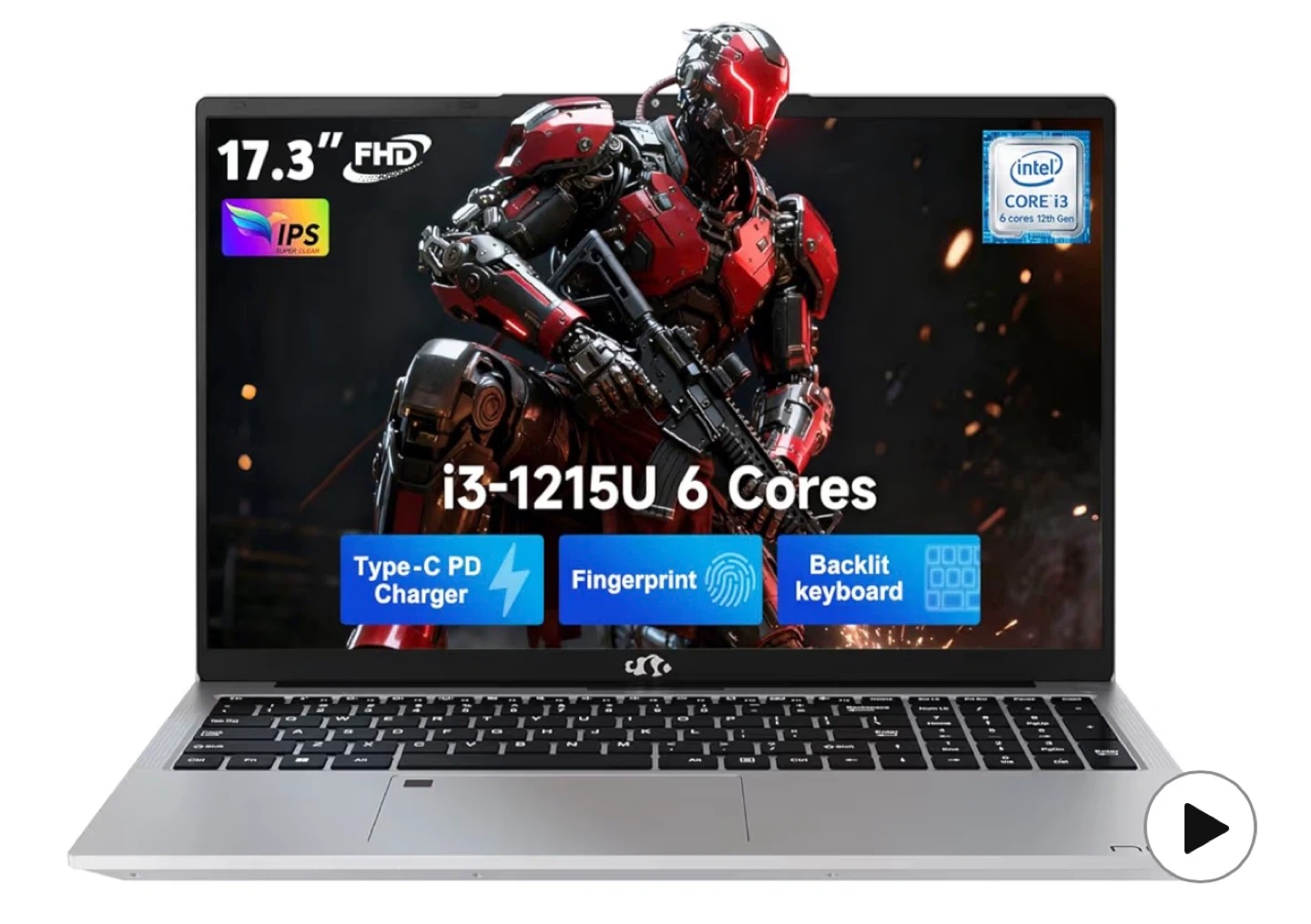 17.3" FHD Laptop - Intel Core i3 12th Gen, 6 Cores,