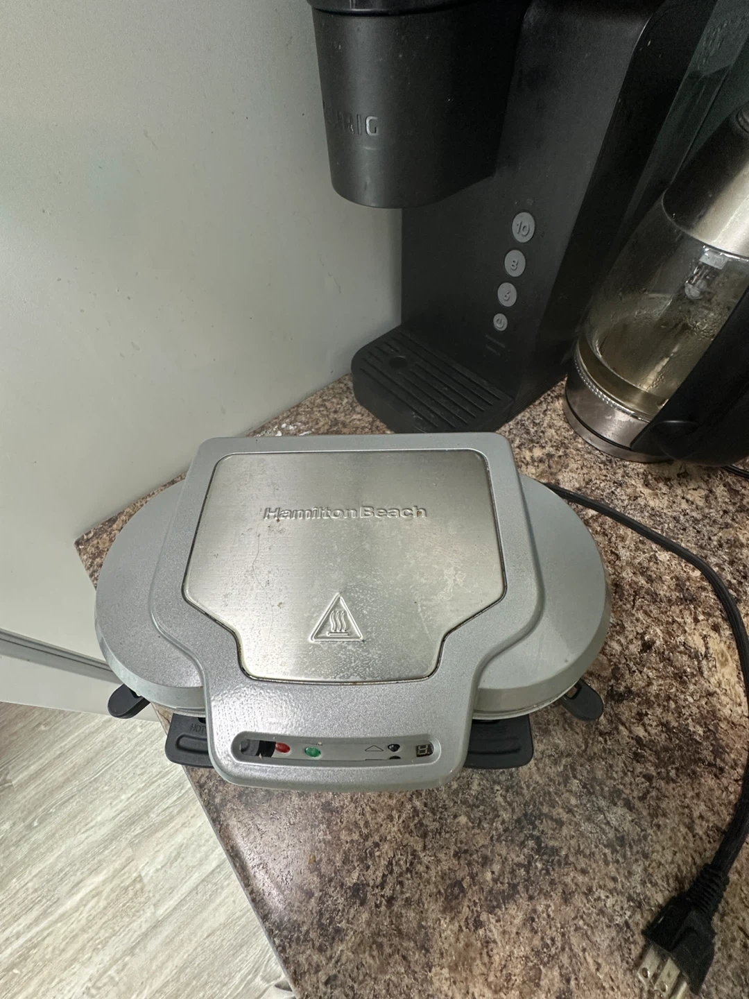 This Hamilton Beach sandwich maker makes quick and easy sandwich. It features indicator lights for power and heating. Non-stick grids are easy to clean. Make your own egg mcMuffin at home.