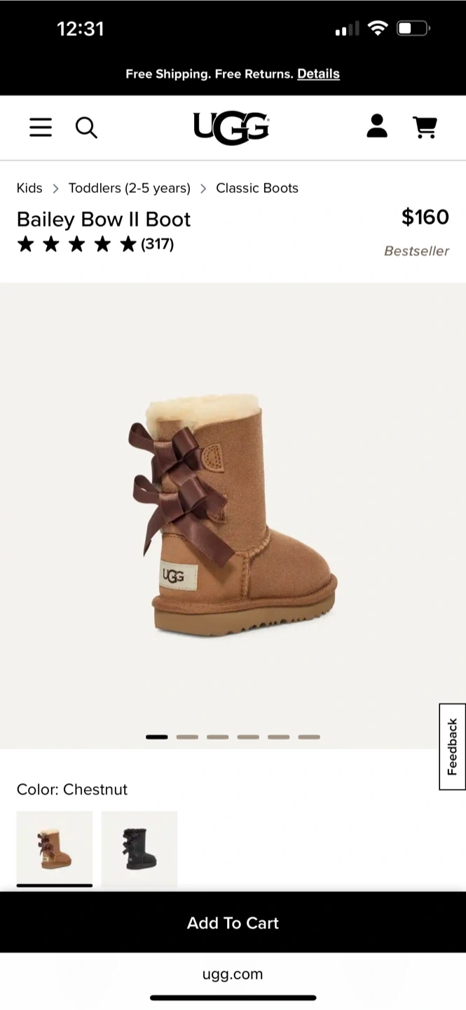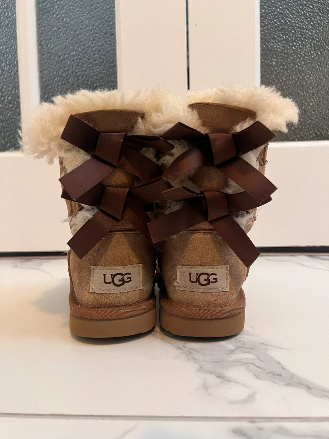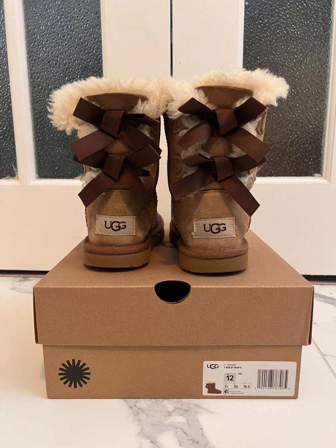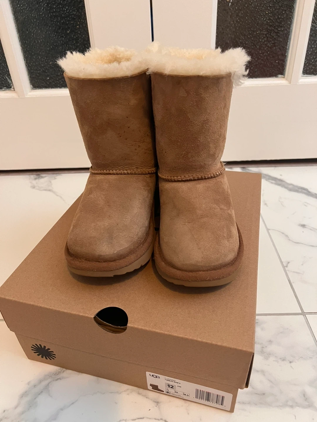 Selling a pair of UGG Bailey Bow II boots in a toddler size 12. They are in great condition and come with the original box.