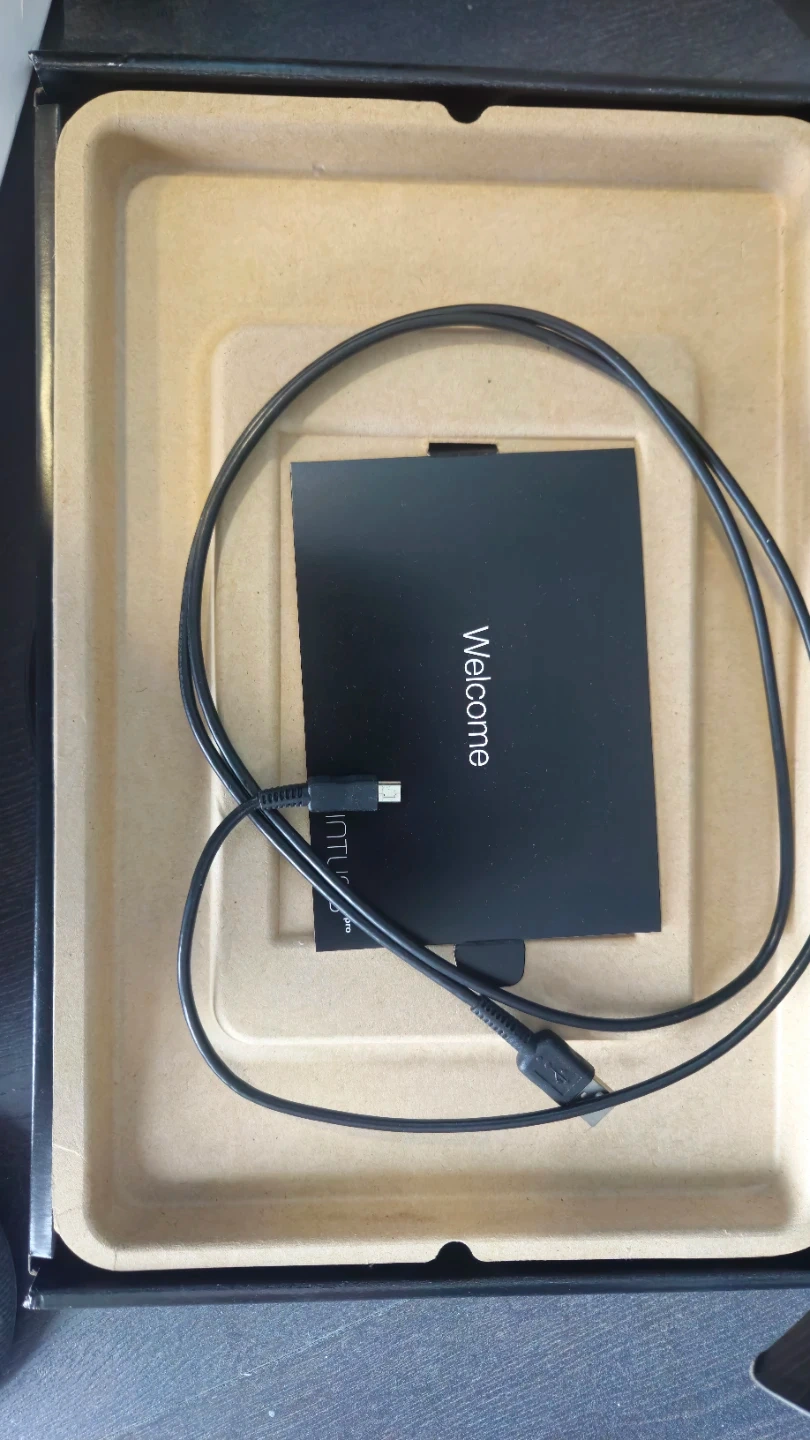 This Wacom Intuos Pro tablet is designed for professional creative work. It comes with the pen and a USB cable for connectivity. Its multi-touch surface allows for intuitive control of your digital art projects.