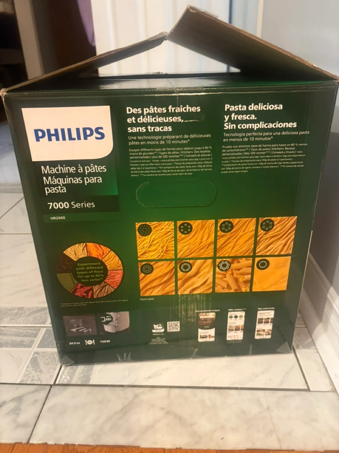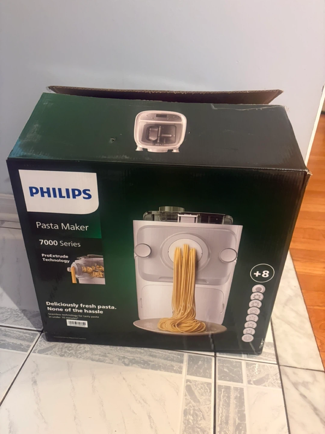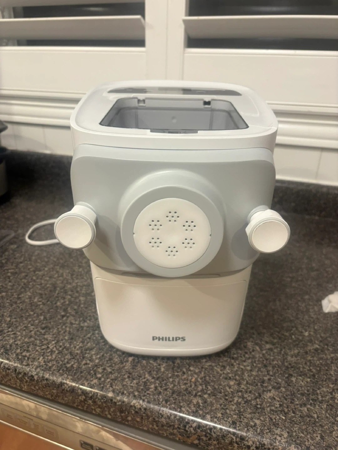 Make fresh pasta at home with the Philips Pasta Maker 7000 Series. It comes with ProExtrude technology and an optimized mixing paddle for a smooth dough. This machine can make up to 500g of pasta in under 10 minutes. It's designed for making delicious, fresh pasta with minimal hassle!