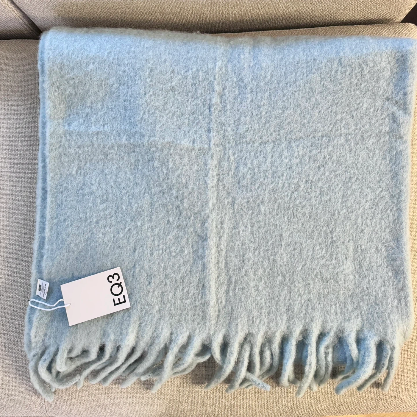 Selling brand new EQ3 soft wooly throw in sky blue. Originally paid $110.88.